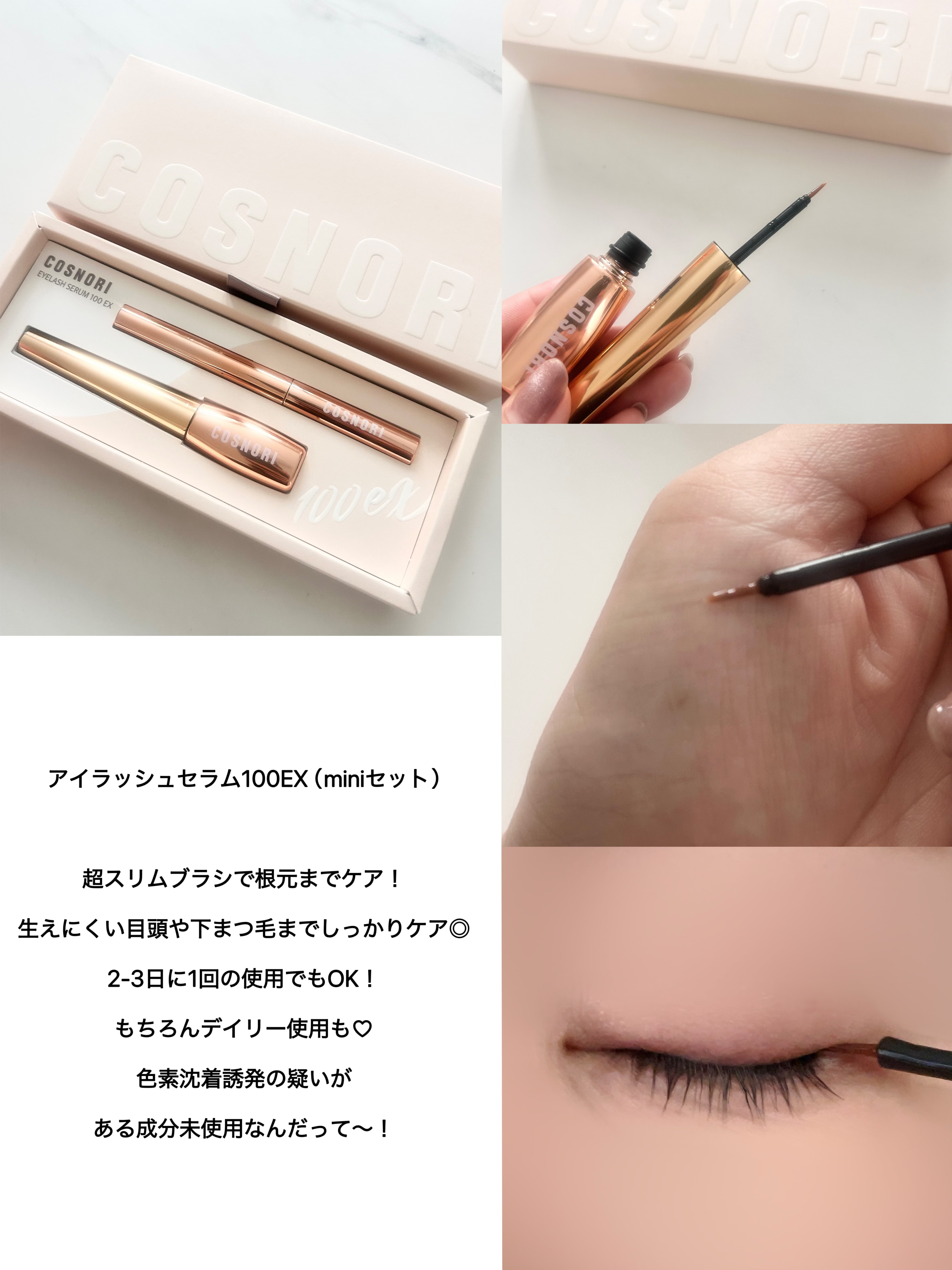 COSNORI♡私のスペシャルケアセット紹介♡デイリーケアが手軽に♡アイラッシュセラム100EX育毛成分特許ペプチドを定番美容液(ロングアクティブアイラッシュセラム)の100倍配合でより早く効果をお届け超スリムブラシで根元までケアし、塗りやす...