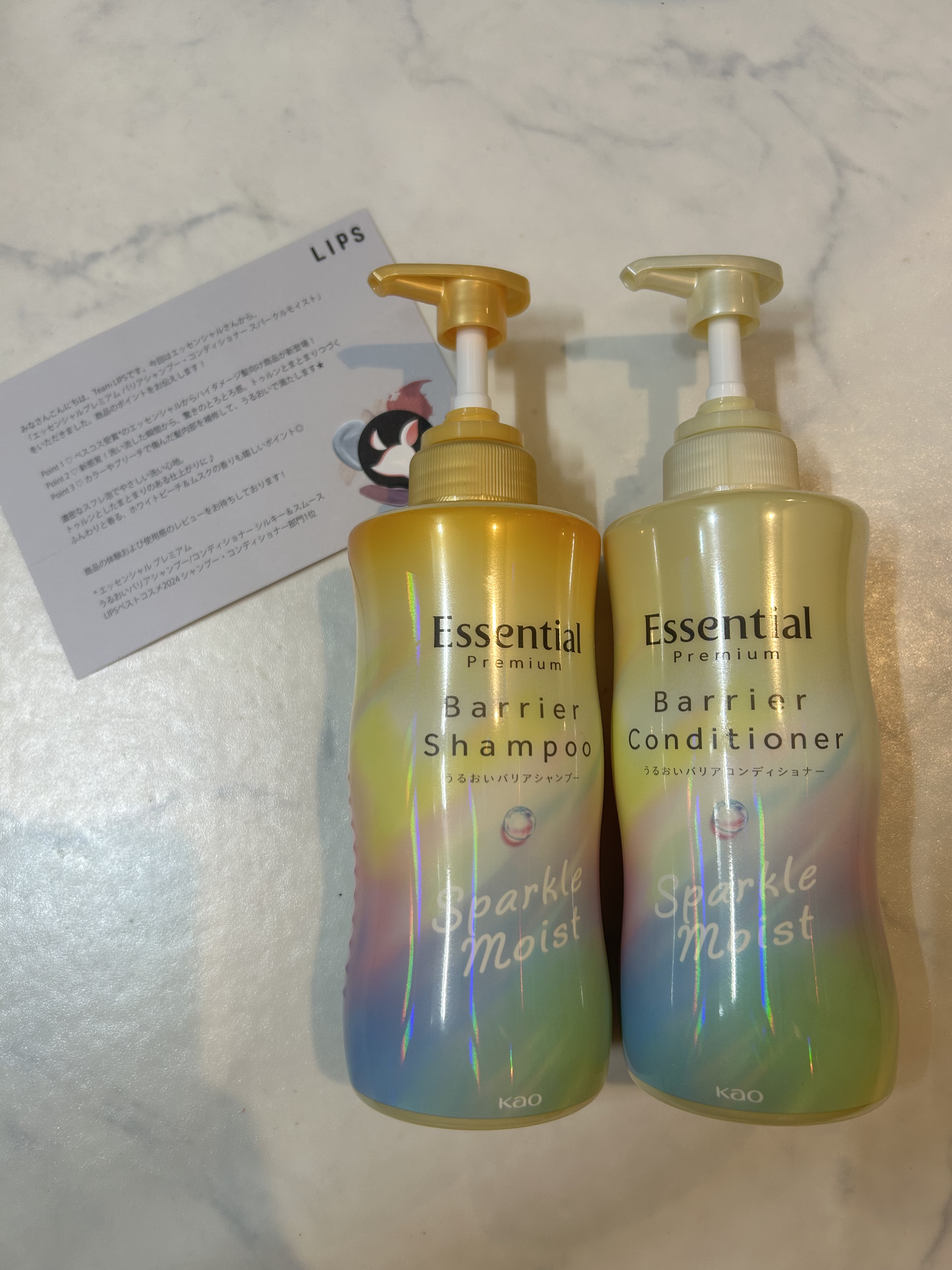 ✼••┈┈••✼••┈┈••✼エッセンシャル様よりLIPS様を通して商品提供をいただきました!エッセンシャルプレミアムバリアシャンプー・コンディショナースパークルモイストカラーやブリーチを繰り返したハイダメージ髪向けのシャンプー&コンディショ...