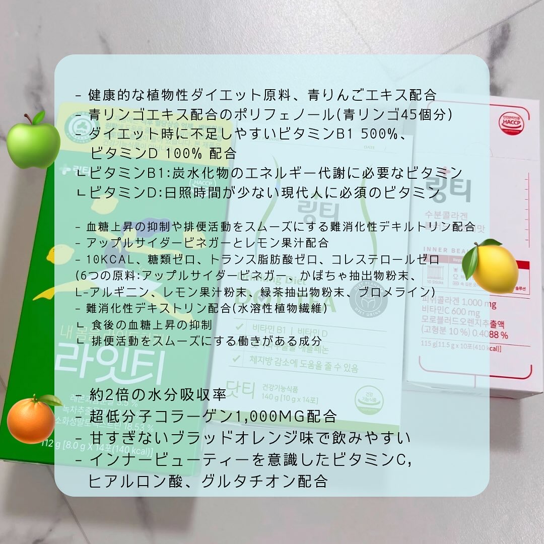 リンティーって知っている?韓国で有名な水分補給ブランドです🥤DOTTEAはビタミン補給もできるダイエットサポートドリンクさっぱりした青リンゴ味で飲みやすく、青りんごエキスのポリフェノールやダイエット時に不足しやすいビタミンB1やビタミンDも摂...