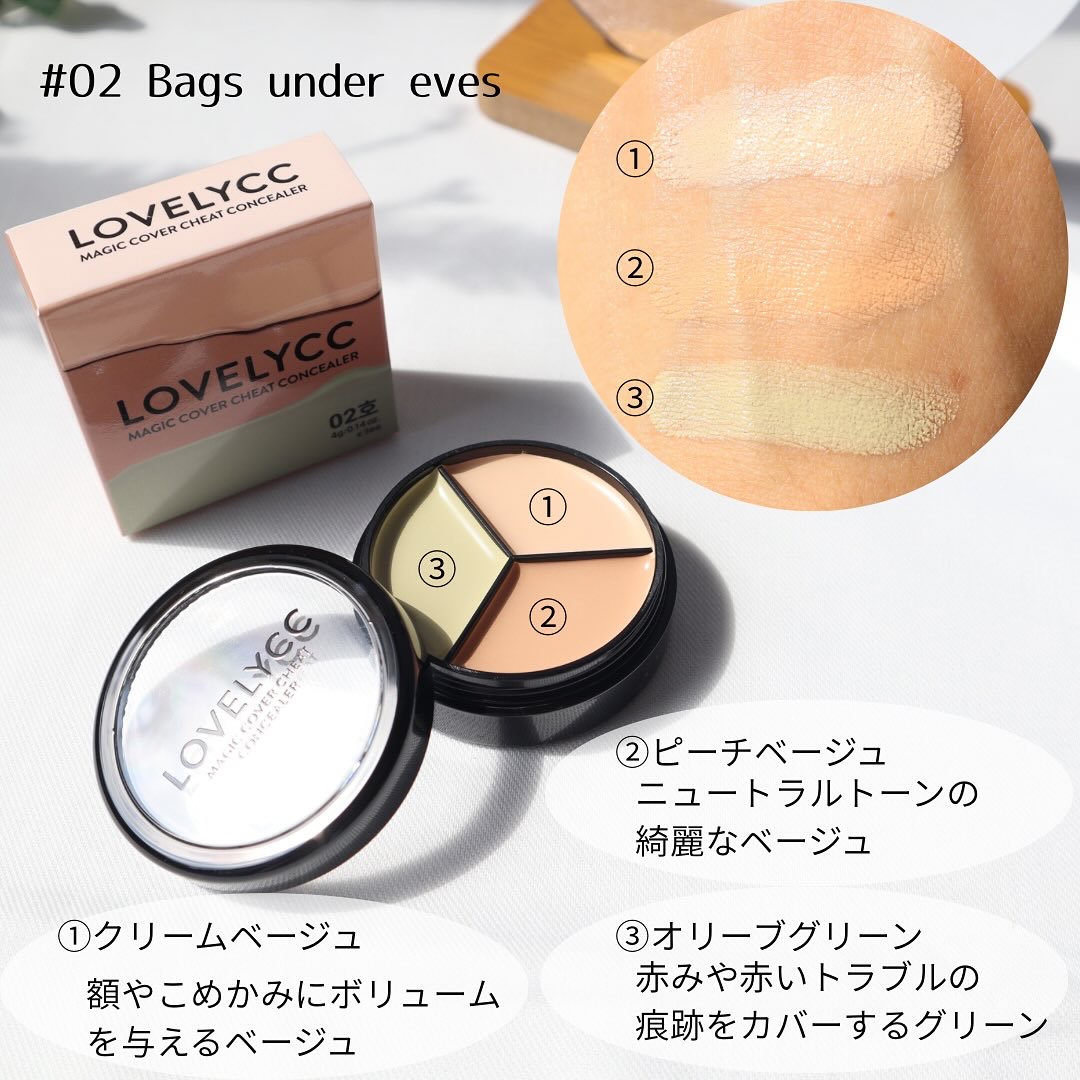 [LOVELYCC]マジックカバーチートコンシーラー@lovelycc_japan・1号:くすみ補正・2号:クマカバー(ダークサークル)・4号:シェーディング&トーンアップ3色入りのマルチコンシーラー。シミや、ニキビ跡、トーン補正、シェーディ...