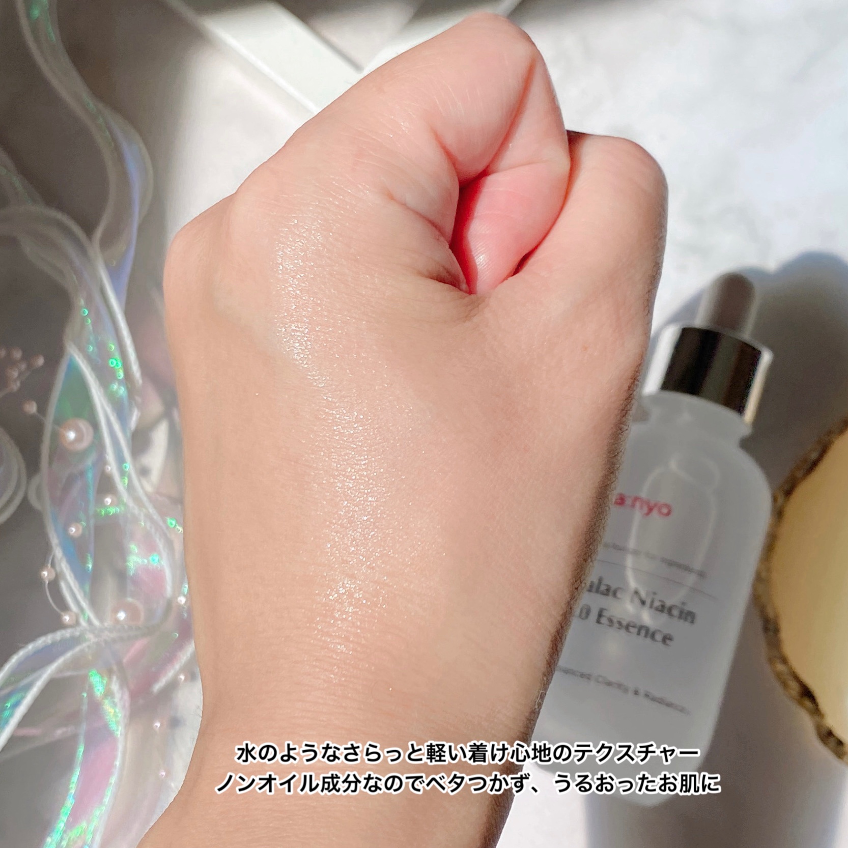 - ・manyoの独自成分!3倍*¹高濃縮でより強力な3世代ガラク 電気石を発酵器に添加し、微生物の成長に刺激を与えガラクトミセス菌の活性度増加!生長性の高いガラクトミセス菌株からガラクトミセス培養液*²を抽出し、肌のキメケアとともに透明感*³のあるお肌へ *¹ 3倍は高濃縮工程前、初期のガラクトミセス培養液(皮膚コンディショニング剤)と比較した場合 *² 皮膚コンディショニング剤 *³ キメが整った肌が与える印象のこと ・肌トーンケア*⁴、毛穴ケア*⁵、肌キメケア*⁶まで、保湿効果 3世代ガラク(Galactomy Active™ 7)と、ナイアシンアミド²配合で保湿成分をより強化し、くすんだ肌トーン*⁸から肌キメ、毛穴*⁵までケアします。 *⁴ 保湿により肌にツヤを与え明るい印象に見せること *⁵ 保湿することで肌をなめらかに整えツヤを与えることで毛穴を目立たなくすること *⁶ キメが整った素肌へ導くお手入れのこと *⁷ ガラクトミセス培養液、BG(どちらも皮膚コンディショニング剤)、1,2-ヘキサンジオール(溶剤) *⁸ 乾燥による ・水のようなさらっとしたテクスチャーで、べたつかず角質層まですっと浸透 保湿成分配合のウォータリーテクスチャーで、使用感は既存の「ガラク ナイアシン 2.0 エッセンス」と同じくさらっとした水のようなテクスチャー。角質層まで素早く浸透!べたつかない使用感で使いやすくて、角質層の奥まで潤い、表面はなめらかで整った肌へ 3月17日(月)からオフラインのバラエティショップで販売 3月24日(月)よりQoo10公式、楽天公式ショップで販売
