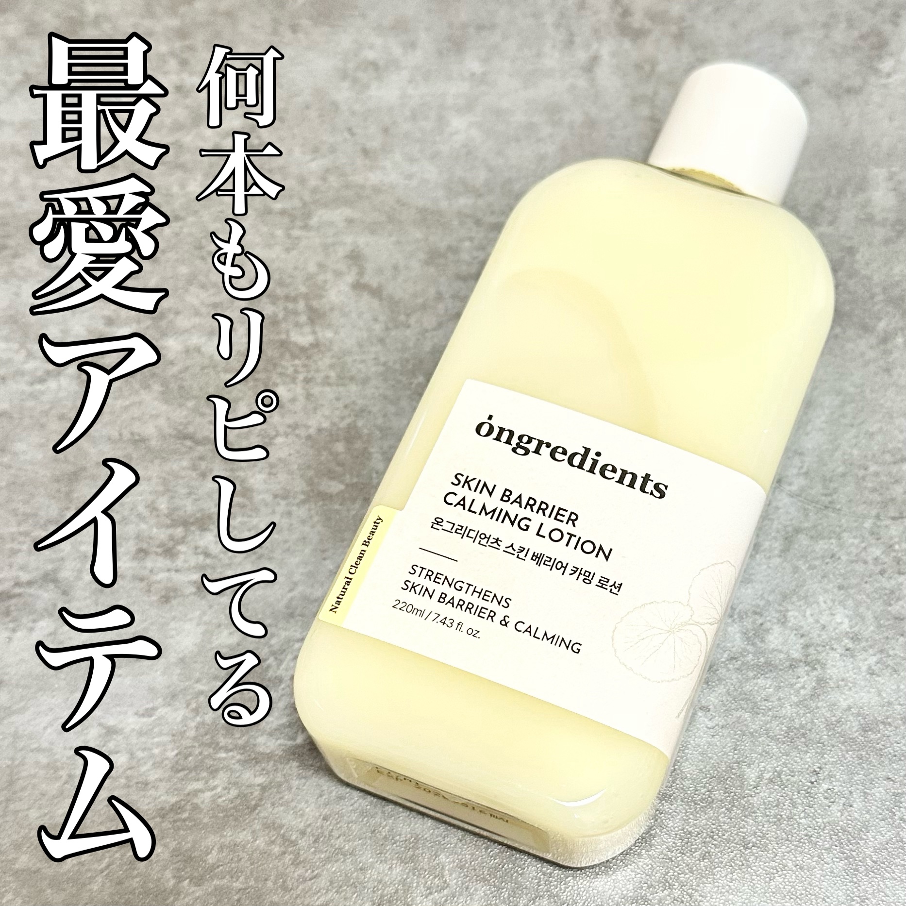 Ongredients(オングリディエンツ)SkinBarrierCalmingLotion 220ml最近のお気に入り♡化粧水とこのアイテムだけで十分にお肌が潤うから時短にも👍☑︎ツボクサエキス配合で荒れた肌をケア‼︎☑︎9種のペプチドが長...