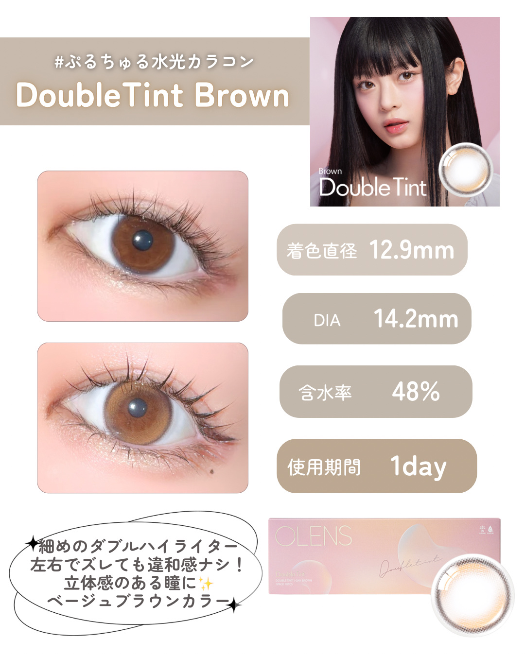 \うるうるカラコン/OLENSGlowyTear1DayBrown/GrayDoubleTint1DayBrown/Gray◆GlowyTear1Day新作は上下で太さの違ううるうるダブルハイライターが可愛すぎる🤍極微細ダブルハイライターと...