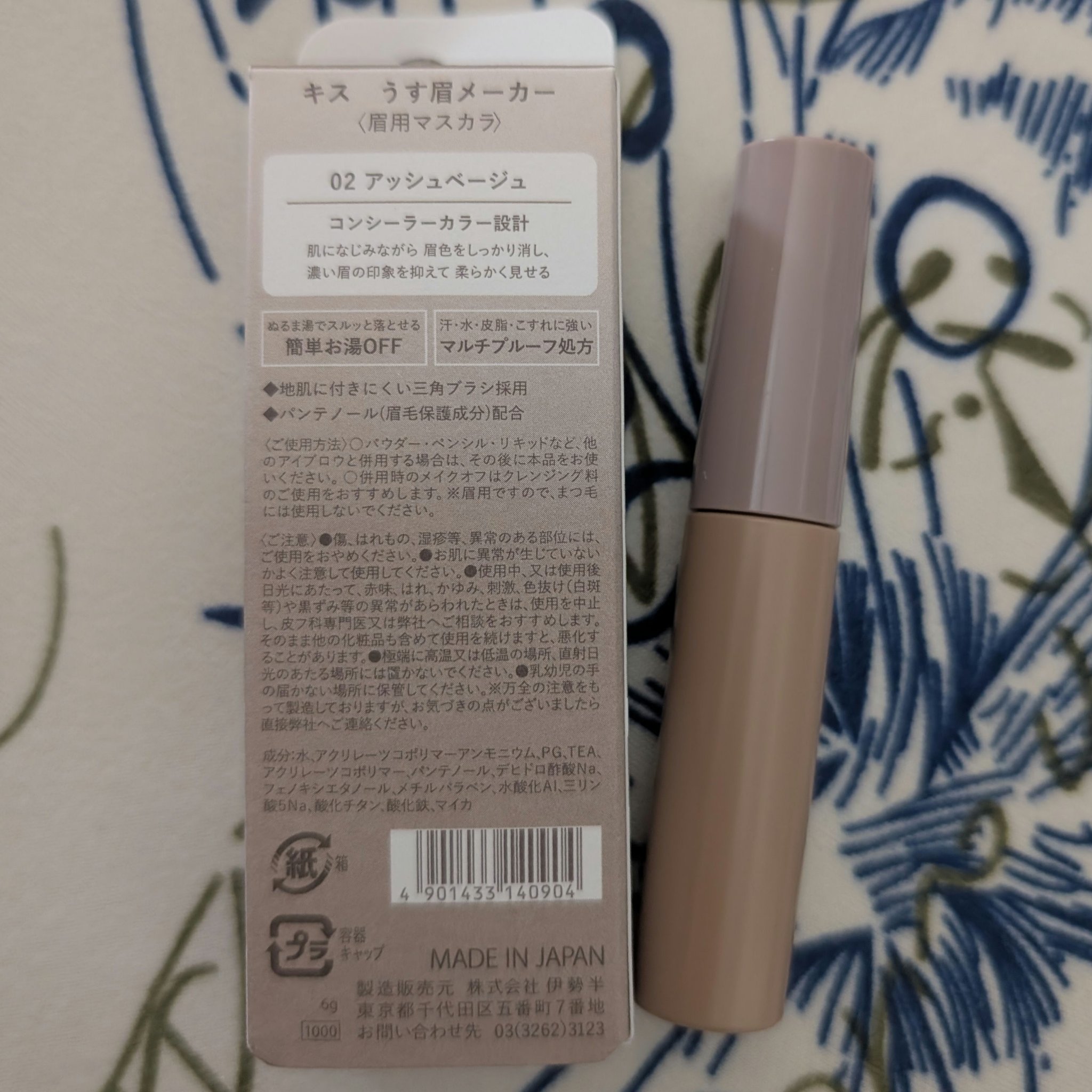 - どんな肌色・髪色でも浮かずに馴染み、濃くなりがちな眉メイクにひと塗り重ねるだけで、ふんわり柔らか眉に。 部分使いで、こだわりの濃淡グラデ眉も完成します。 キス独自のコンシーラーカラー設計 ◇肌に馴染みながら眉色をしっかりカバーし、ほんのりアッシュベージュで濃い眉の印象を抑えて柔らかく見せます。 描きすぎた眉も、ひと塗り重ねるだけでふんわり眉に ◇濃くなりがちな眉メイクも、ひと塗り重ねるだけで、ふんわり抜け感のある眉に仕上がります。 地肌に付きにくい三角ブラシ ◇スリムな先端で、細部までピンポイントに塗りやすい三角ブラシを採用。色ムラになりにくく、均等に色付きます。 ぬるま湯でスルッと簡単に落とせるフィルムタイプ 汗・水・皮脂・こすれに強いマルチプルーフ処方 パンテノール(眉毛保護成分)配合 〈数量限定〉 濃い眉も、ひと塗りで柔らか眉に仕上げるアイブロウマスカラ 肌馴染みの良さはそのままに、より明るい色に仕上がる限定カラー X99 スノウベージュ:眉の黒さをしっかり抑える、地肌に限りなく近い明るさのホワイトベージュ。 キス独自のコンシーラーカラー設計