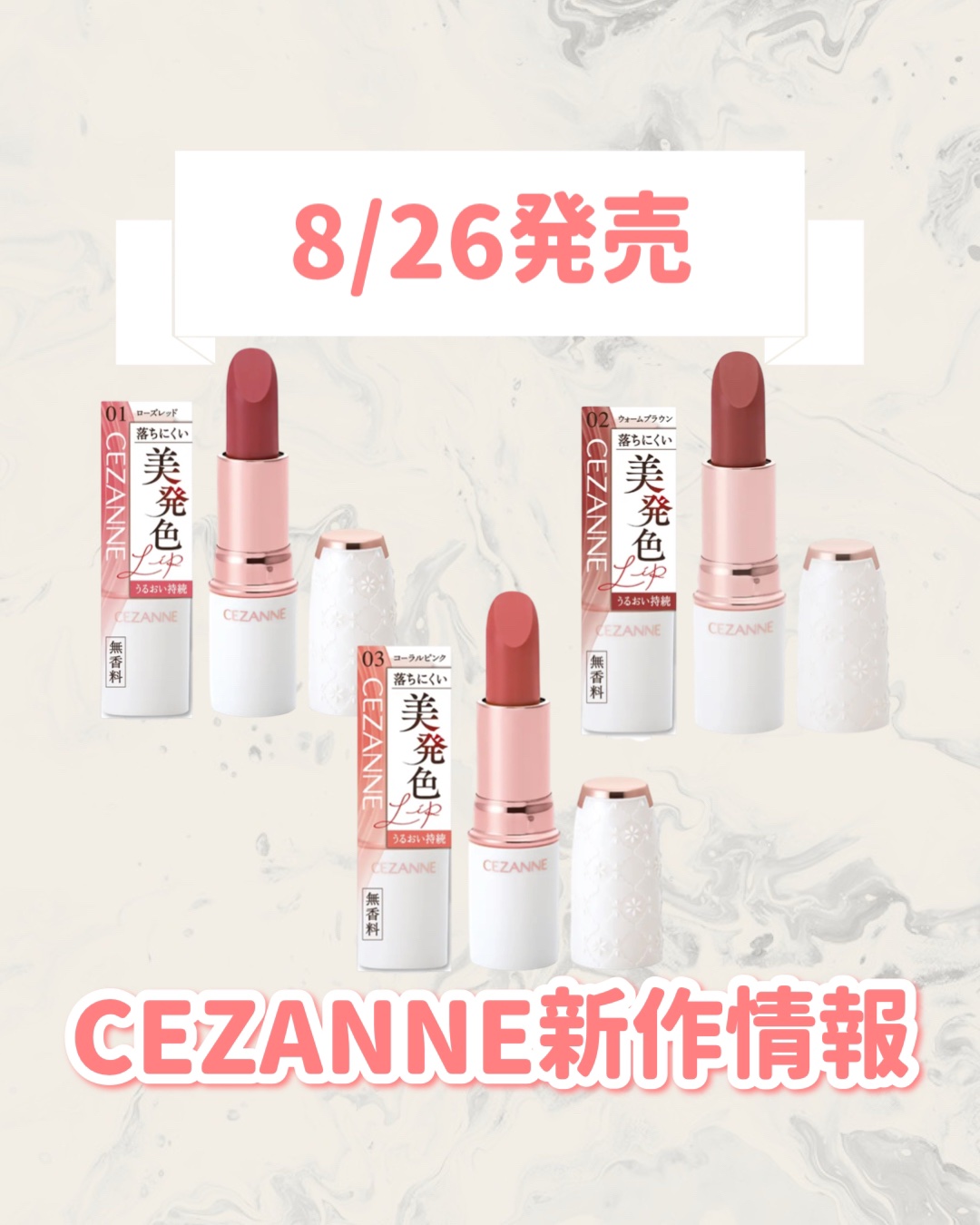 \CEZANNE新作💄全色レビュー!/CEZANNEラスティングステイリップカラー01ローズレッド02ウォームブラウン03コーラルピンク各¥7158月26日発売セザンヌはいつも期待を裏切りませんが…今回もめっちゃ良い😭💗買って大正解です!!ど...
