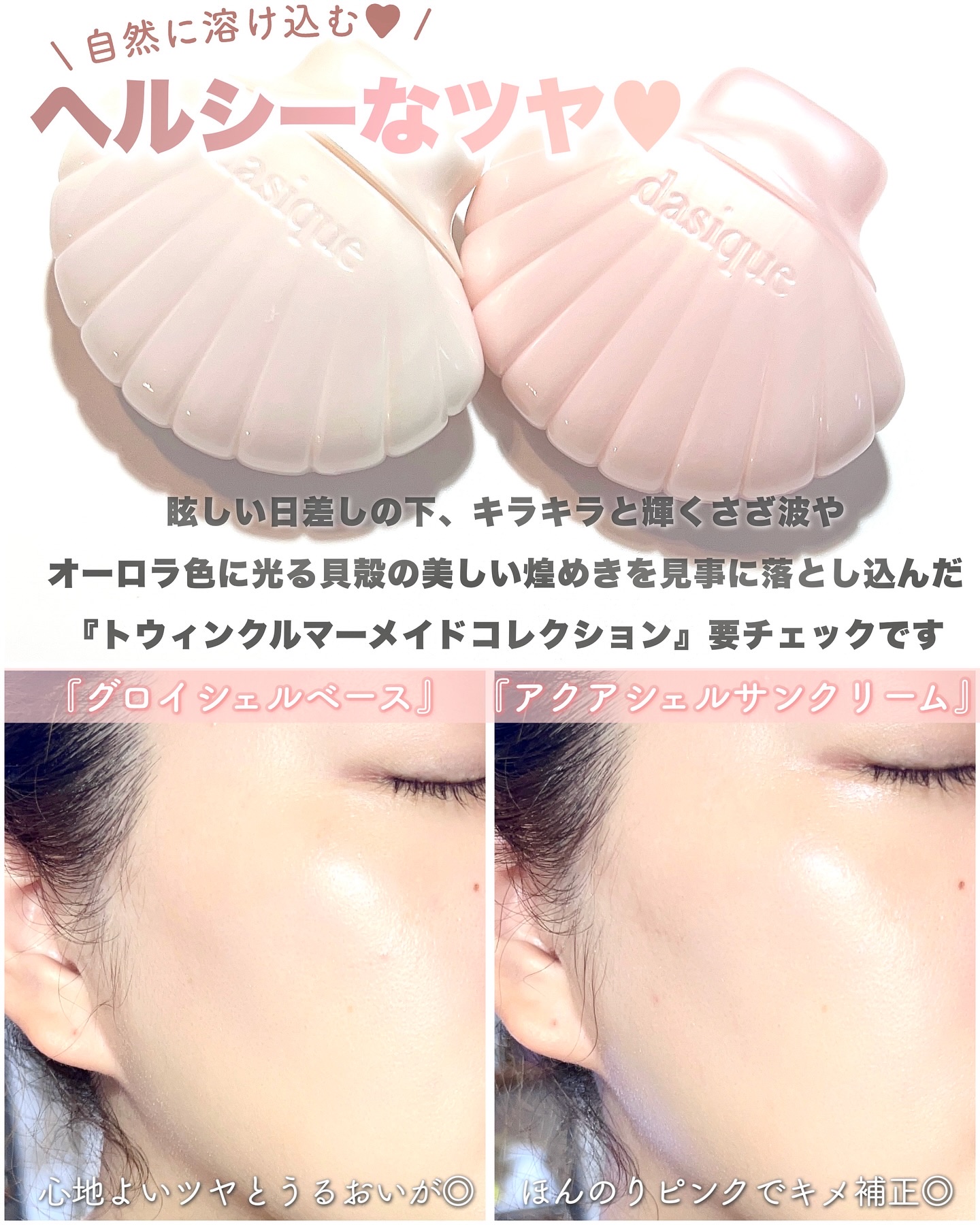 🩵🧜🏻♀️𝗗𝗮𝘀𝗶𝗾𝘂𝗲トゥインクルマーメイド🧜🏻♀️🩵まるで人魚の宝石箱💍✨見た目も中身も最強に可愛い《シェル型ベース&日焼け止め》が新登場!🌊𝗚𝗹𝗼𝘄𝘆𝗦𝗵𝗲𝗹𝗹𝗕𝗮𝘀𝗲パールのようなツヤをまとって、肌を自然にトーンアップ✨ベースから...