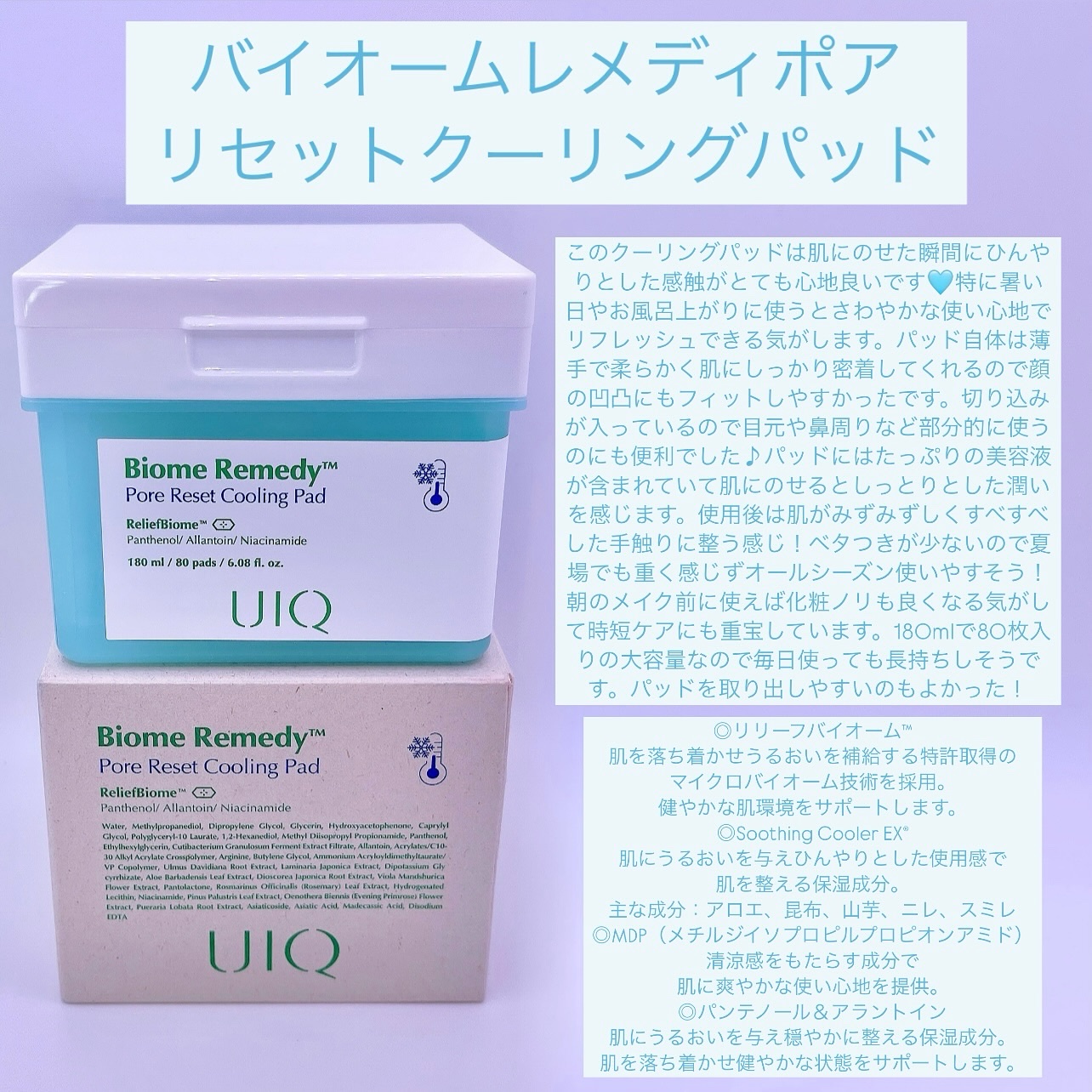 poppubeauty様🏷️@poppu_officialのレビュー企画にていただきましたUIQ/ユイク◻︎バイオームレメディポアリセットクーリングパッド80枚入りこの夏の必需品になること間違いなし!!3秒クーリングパッドで火照ったお肌の鎮静...