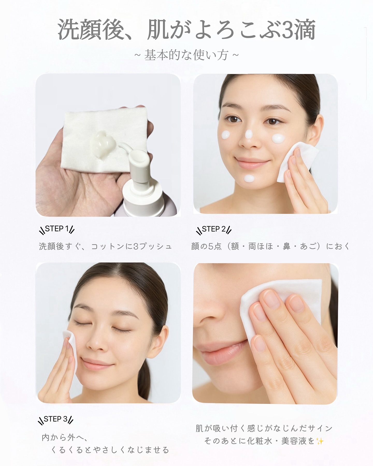 | 肌に溶け込むように浸透してモチモチした肌を実感!化粧水の浸透力も良くなる♪ | 詳細を見る |