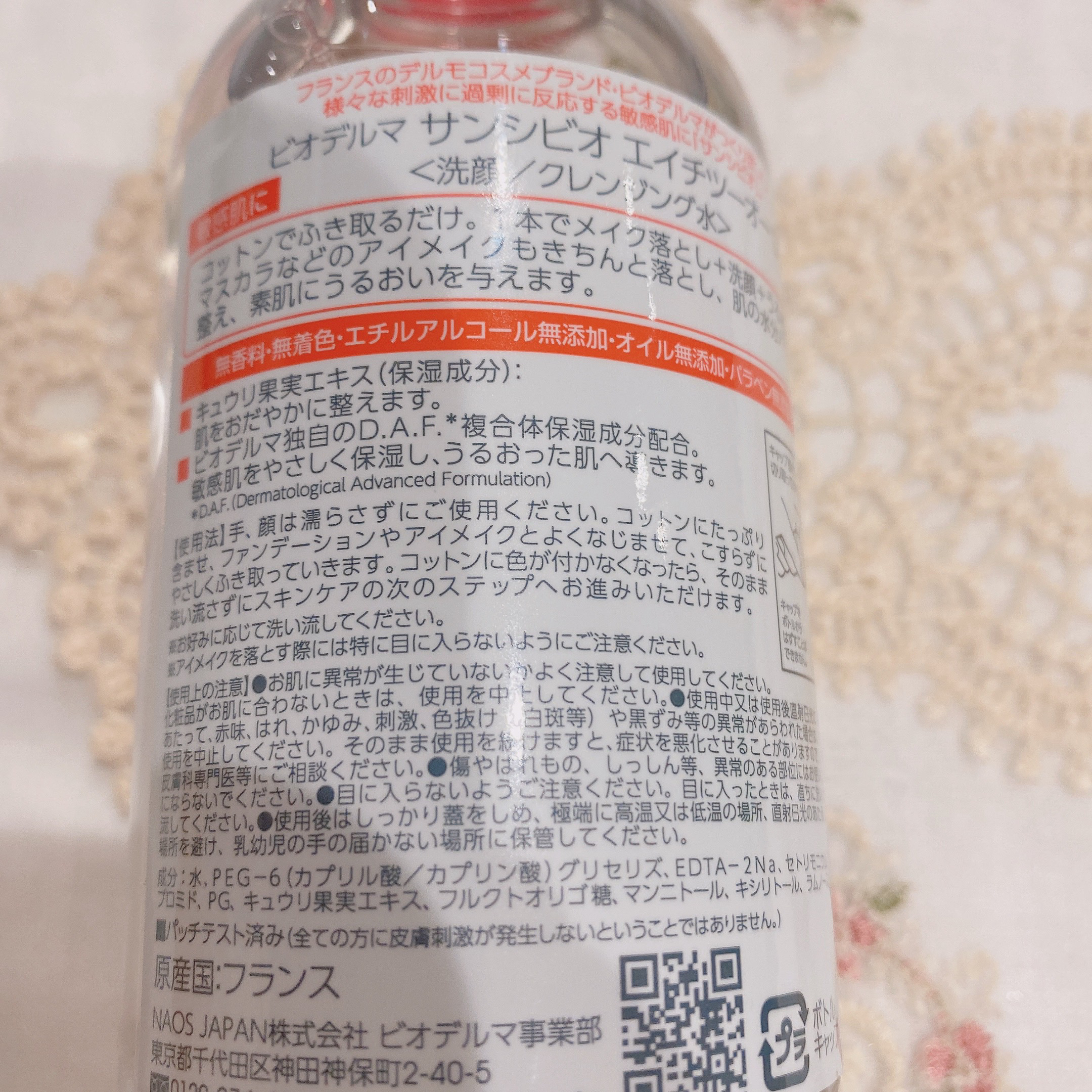 - ※2025年11月下旬〜250ml・500mlの商品パッケージを順次リニューアル。尚、これにかかる商品の返品・交換は承っておりません。 肌にやさしい使い心地で、マスカラなどのアイメイクも素早く落とします。 敏感肌さんも、面倒くさがりやさんも!手放せない!時短クレンジング水! コットンでふき取るだけ。1本でメイク落とし+洗顔+うるおいケア。 マスカラなどのアイメイクもきちんと落とし、肌の水分バランスを保ち、素肌にうるおいを与えます。 ■キュウリ果実エキス(保湿成分): 肌を整えます。 ■ビオデルマ独自のD.A.F.*複合体保湿成分配合。 敏感肌をやさしい使い心地で保湿し、うるおった肌へ導きます。 *D.A.F.(Dermatological Advanced Formulation) 保湿成分: マンニトール、キシリトール、ラムノース