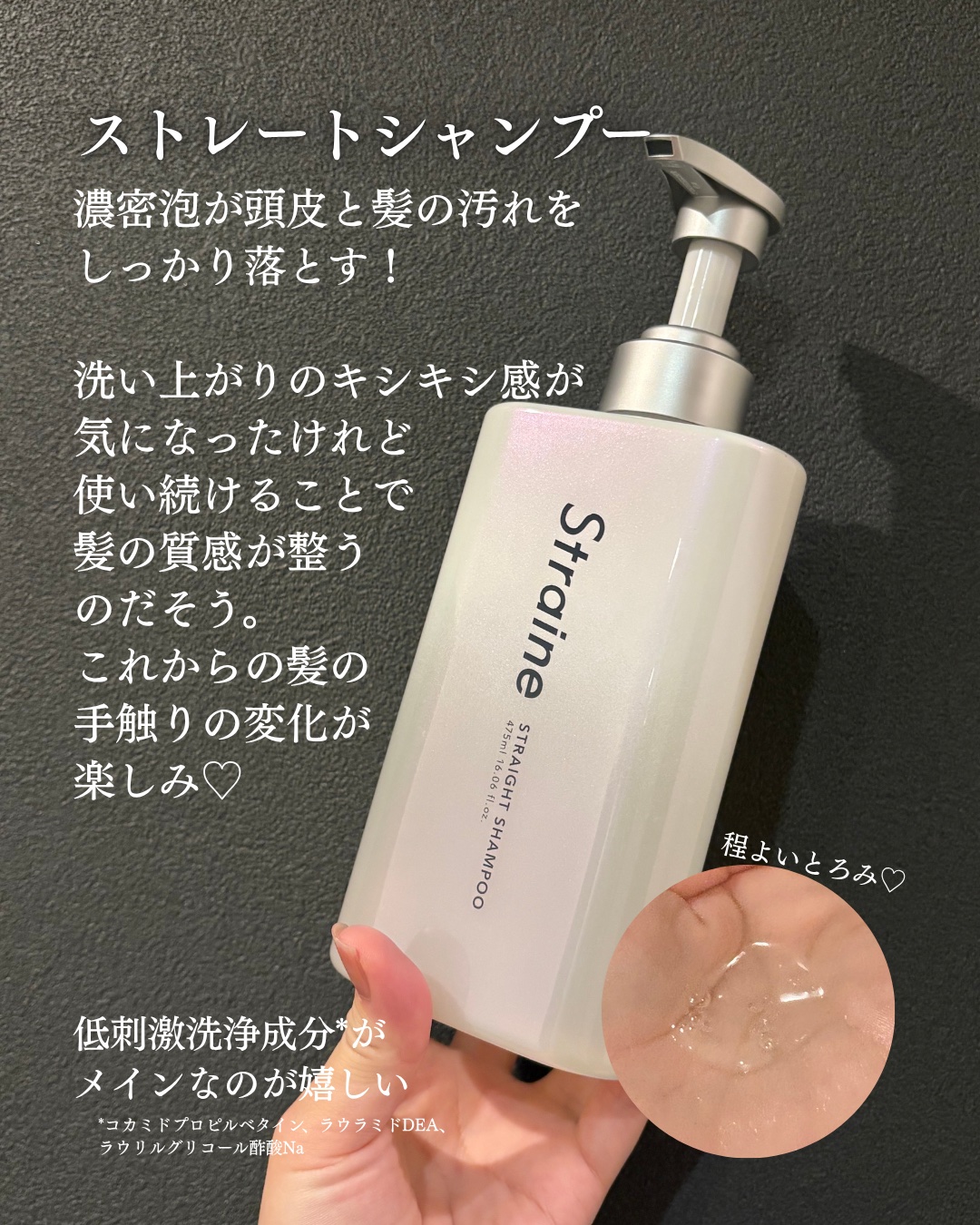 「ストレイン」さまから商品提供をいただきました。Straine(ストレイン)ストレートシャンプー/ストレートトリートメント各475mLStraineは、世界初のストレートシルクケア成分を独自配合し、クセ・うねりを整え、しなやかなストレートヘア...