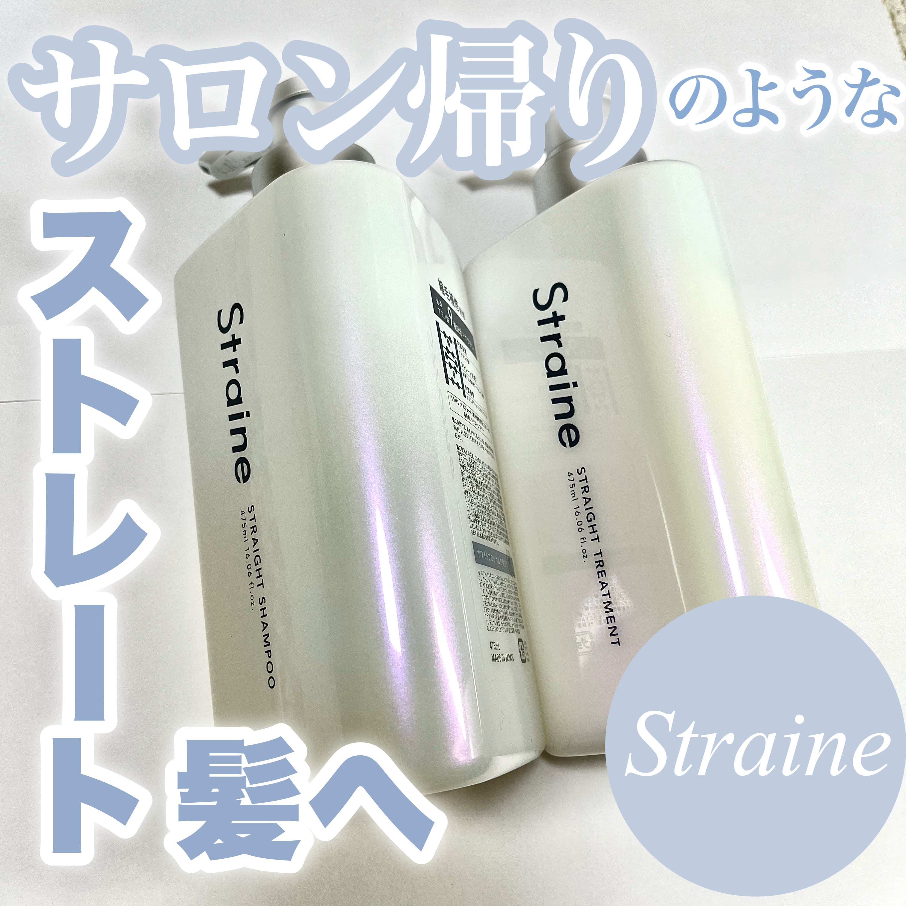 - “straight(真っ直ぐ)”と“line(線)”を組み合わせた造語「Straine」は、まるで一本の美しいラインのようにしなやかで整ったストレートヘアをイメージ。理想のストレート質感を目指し厳選した補修成分と内部構造に着目した独自の補修設計技術で、乾燥によるクセ・うねりケアに悩むすべての人へ、新しい自分との出会いをお届けする新ヘアケアブランドです。  ️髪の内部構造に着目した、独自の「トリプルストレート処方」 縮毛補修発想。髪の内側の構造に着目し、まっすぐまとまる髪を科学的に研究し導きだした3つの処方。 髪の構造を深く理解したアプローチで髪質を再整*1し、潤いを保ちながら、滑らかな指通りへ。 9種の必須アミノ酸*2と7種のケラチン*3を贅沢に配合し、髪内部を補修をしながら、理想の“シルクストレート質感*4 ”を目指します。  ️POINT01|内部補修 -髪内部のうねり原因を補修。まっすぐな髪を目指して。 髪のうねりの原因となる乾燥による内部構造の乱れを、必須アミノ酸*2を含むアミノ酸と密度補強成分「ジマレイン酸」*5で補修。さらに、縮毛補修発想から生まれた成分「トステア®」*6を配合し、ハリ・コシのあるストレート髪を目指します。  ️POINT02|シルク質感 ‐ダメージを立体補修 ダメージによって生まれた髪内部の空洞“ダメージホール”を、保湿成分である7種類の分子量の異なるケラチン*3が髪芯部まで浸透し、立体的に内側まで補修。PPT系高級洗浄成分*7が、髪1本1本を洗い上げ、しなやかで指通りなめらかな“シルクタッチ”の髪へと仕上げます。  ️POINT03|うるおいバリア ―湿気や熱から髪を守る 湿気によるうねりを防ぐために、5種のセラミド*8とサクラン®*9で髪内部の水分をキープ。さらに、熱に反応してバリアを形成する「γ-ドコサラクトン」*10と、キューティクルを保護する「擬似18-MEA」*11が外的ダメージから髪を守り、湿気から髪を保護しながらストレート状態を長時間キープします。  ️凛とした透明感が香り立つホワイトブロッサムの香り サロン帰りのような心地よさを、毎日のバスタイムに。フレッシュなフローラルと果実の爽やかさが調和した、みずみずしく上品な香りです。 *1 うるおいにより、髪の質感を整えること *2 バリン、トレオニン、イソロイシン、ヒスチジン、フェニルアラニン、ロイシン、リシンHCl、メチオニン、トリプトファン(全て保湿) *3 加水分解ケラチン(カシミヤヤギ)、ヒドロキシプロピルトリモニウム加水分解ケラチン(羊毛)、(ジヒドロキシメチルシリルプロポキシ)ヒドロキシプロピル加水分解ケラチン(羊毛)、ココジモニウムヒドロキシプロピル加水分解ケラチン(羊毛)、イソステアロイル加水分解ケラチン(羊毛)、加水分解ケラチン(羊毛)、ケラチン(全て保湿) *4 うるおいによる、なめらかな質感のこと *5 ジマレイン酸プロピレンジアンモニウム(保湿) *6 アミノエチルチオコハク酸ジアンモニウム(保湿) *7 ココイル加水分解ケラチンK(羊毛)(洗浄) *8 セラミドNG、セラミドAP、セラミドAG、セラミドNP、セラミドEOP(全て保湿) *9 スイゼンジノリ多糖体(保湿) *10 (保湿) *11 セテアラミドエチルジエトニウム加水分解コメタンパク、ラノリン脂肪酸(保湿)