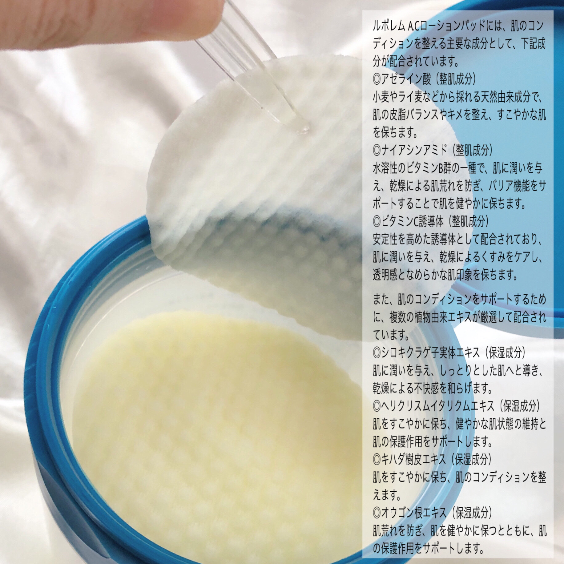 たったの10秒で角質ケア完了✨LEPOREM(ルポレム)@leporem_japan(IG)A.CLOTIONPADアゼライン酸トナーパッド拭き取りパッド、パックどちらにも使え60枚入りの大容量で惜しみなく使えるローションパッド皮脂バランスを...