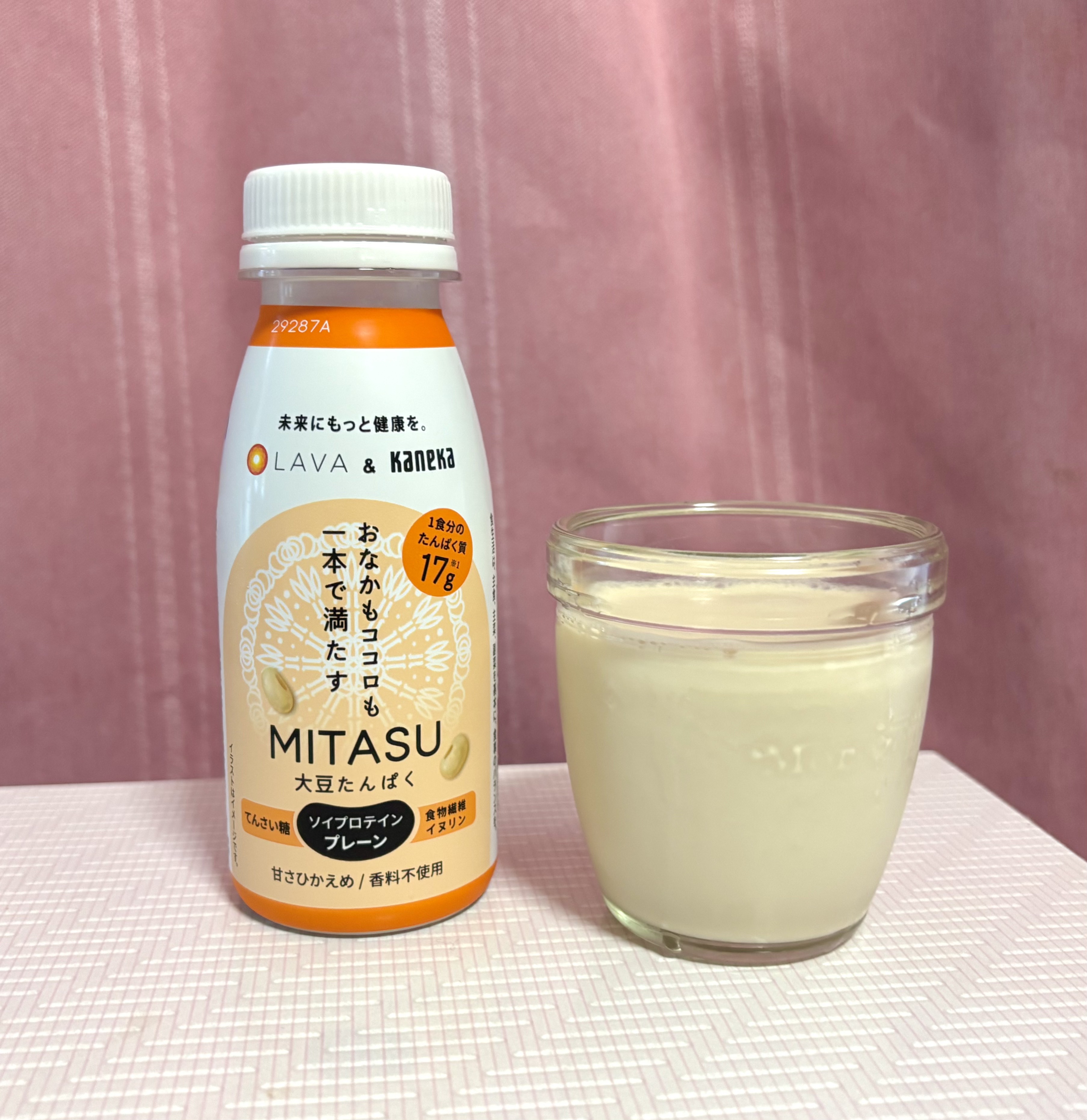 MITASUプレーンとろっと食感で満腹感!おなかもココロも1本で満たす、新しい自然派たんぱくドリンクとろみがありまろやかな口当たり!大豆のクセが控えめで、ほんのり甘さがありスッキリとした味わいで飲みやすいです✨✨今は暑いので、冷蔵庫で冷やして...