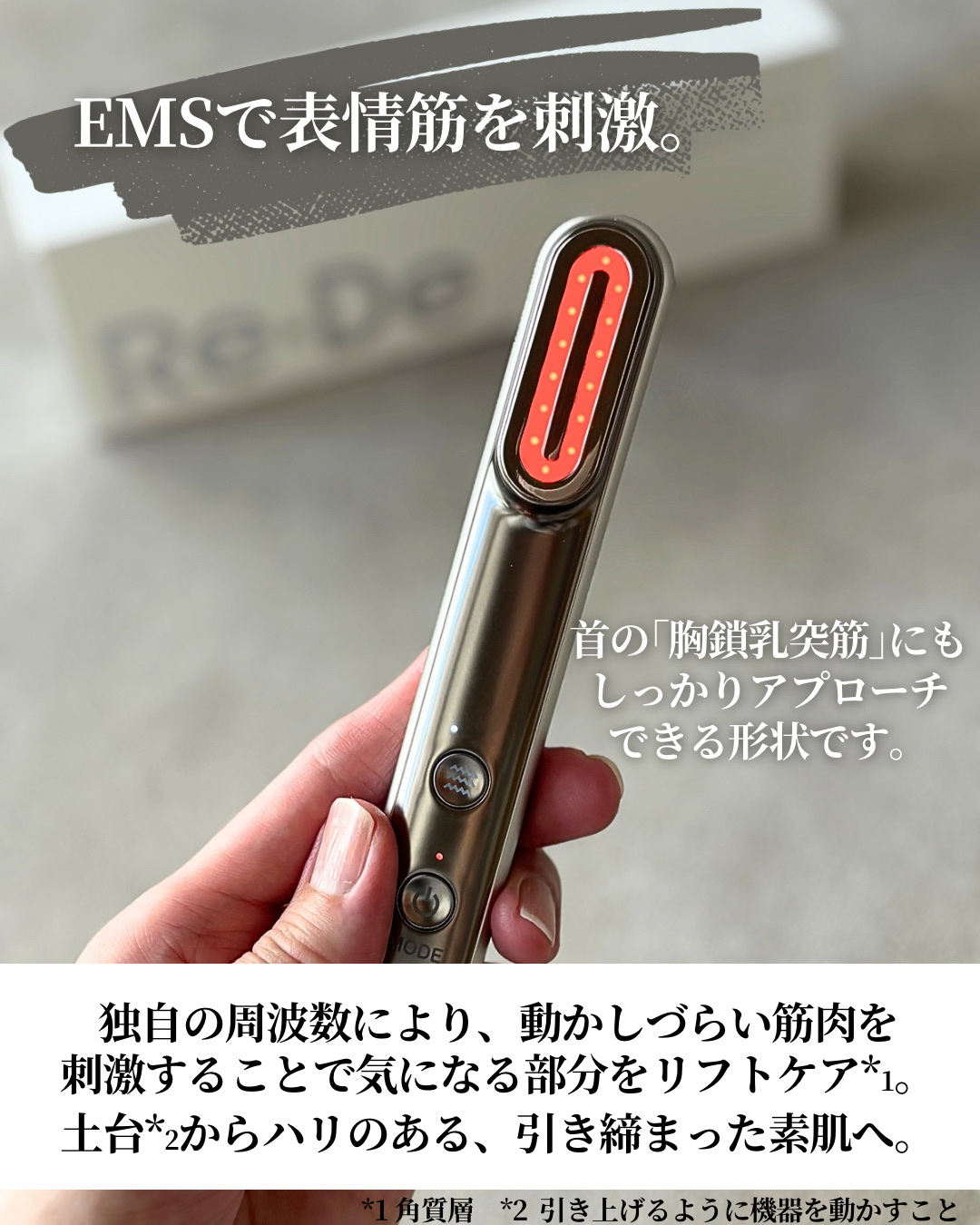 ▷Re・DeSuhadaスティック美顔器Re・Deからスティックタイプの美顔器が発売✨手軽なケアでハリ感のある肌に。持った感じ軽くてコンパクトなのでリフトケア*もやりやすいです。心地よい使用感で化粧水で肌を整えた後5分間ケアするだけでいいので...