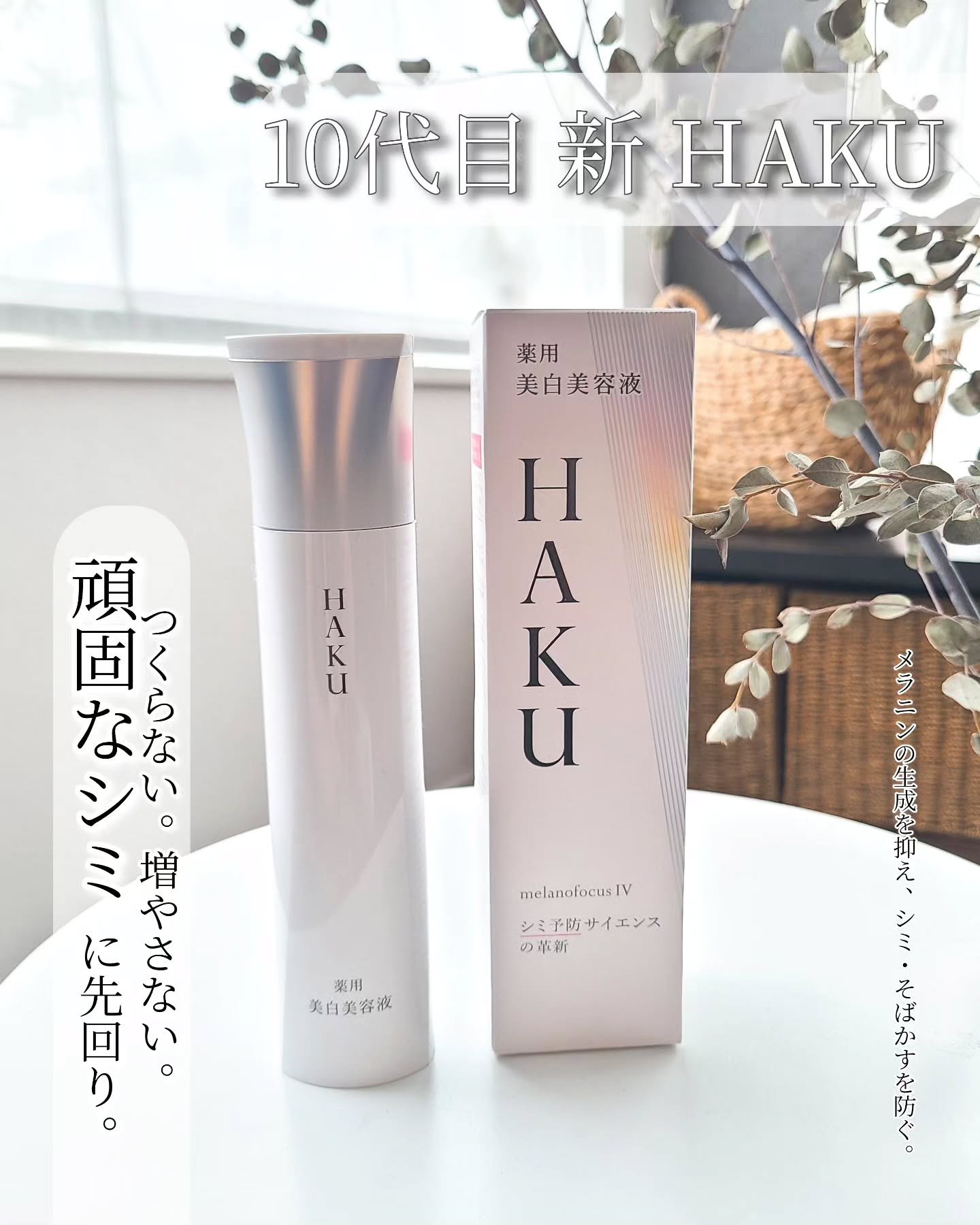HAKU様からいただきました資生堂を代表する美白美容液HAKUが10代目に進化!「HAKUメラノフォーカスIV」(医薬部外品)は、シミができる根本原因を徹底的に研究した先端のシミ予防研究から生まれた、「『頑固なシミ』に先回り。つくらない、増や...