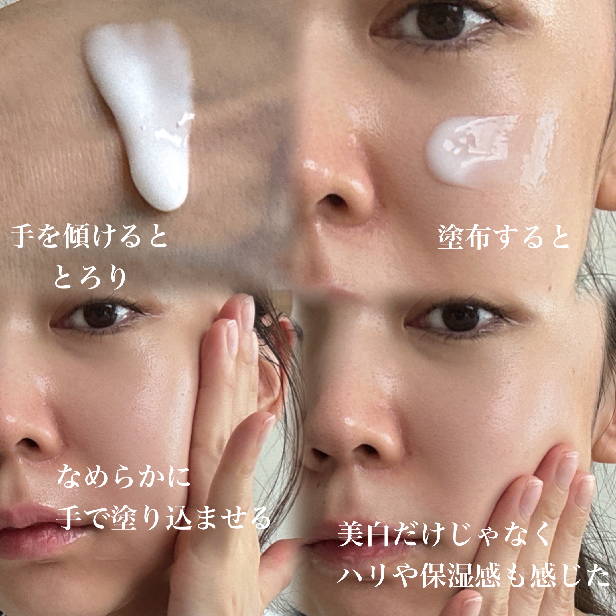 | スルスルっと伸びて、肌になじむとほんのりツヤ感を感じます。 後肌はさらり。 | 詳細を見る | ||