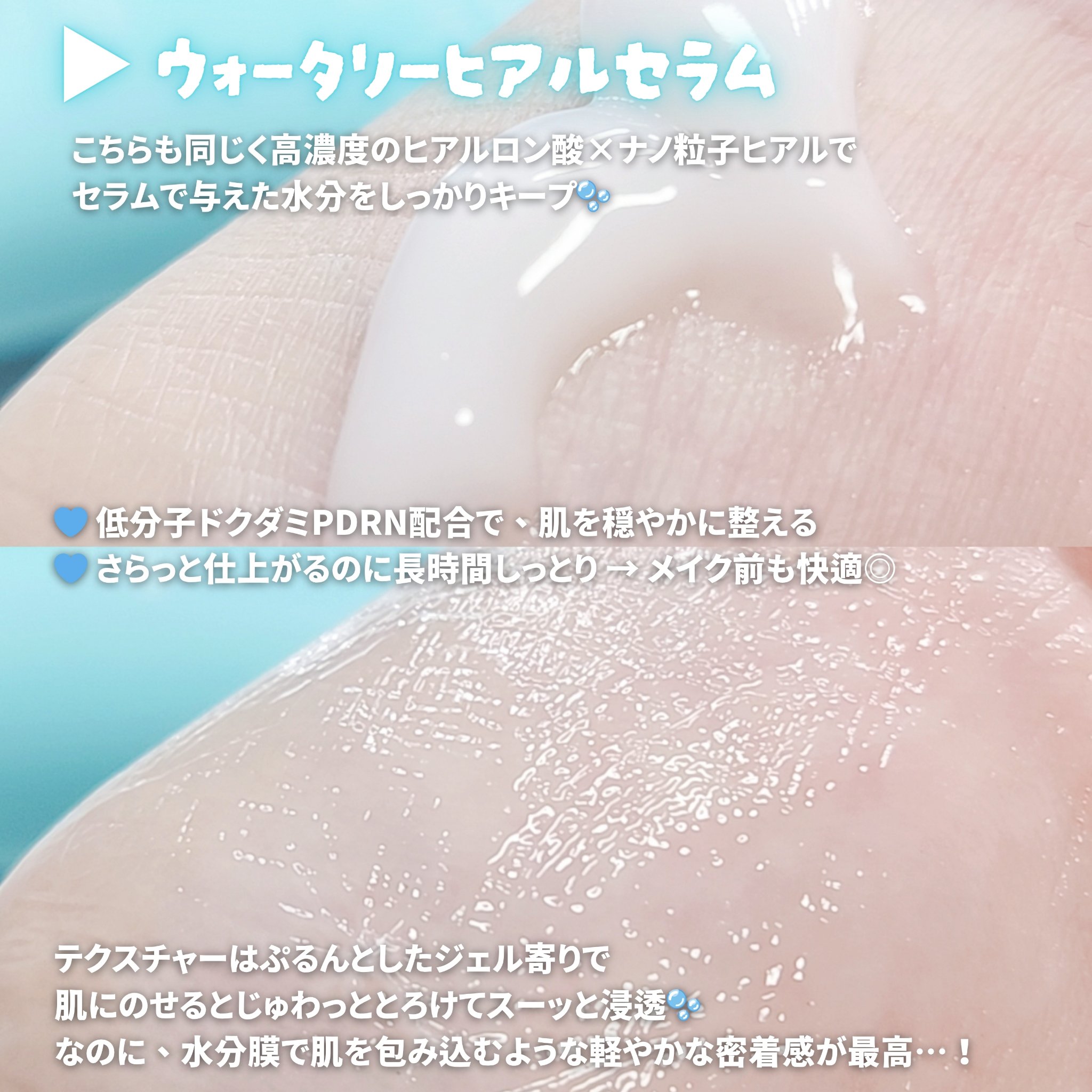 💧💧💧速やかにうるおいチャージしたい方にオススメ💡純度99%ヒアルロン酸、ナノパーティクルヒアルロン酸が、べたつかず水分だけをしっかりチャージしてくれると言う!Realbarrierウォータリーヒアルセラム低分子工程で抽出したドクダミPDRN...