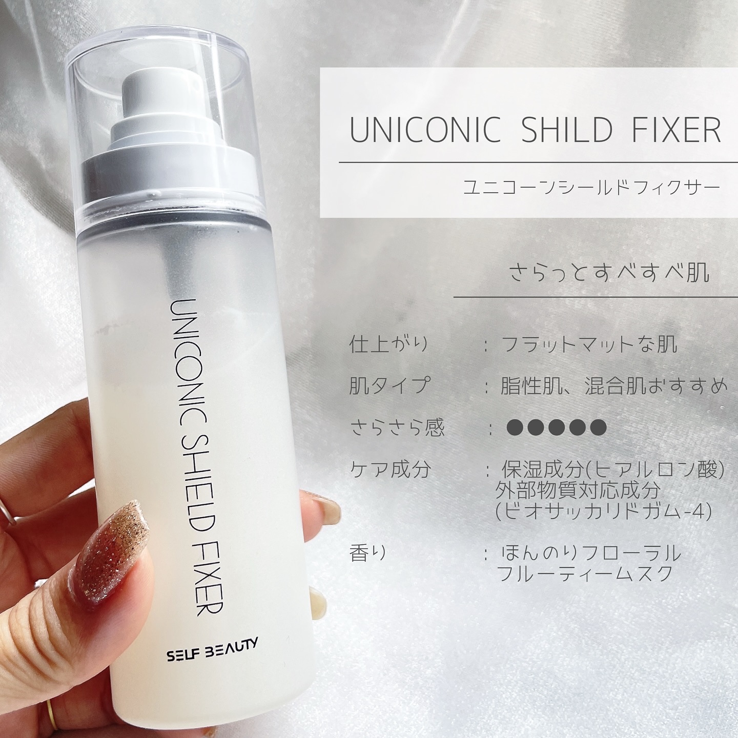 SELFBEAUTY「ユニコーンシールドフィックスミストマット」をお試しました😊以前からYouTubeなどでも拝見してて使ってみたかったので楽しみ〜🎶夏は特になんですが、わたしメイクフィックスミスト難民なんです( ̄▽ ̄;)お店には様々なフィッ...