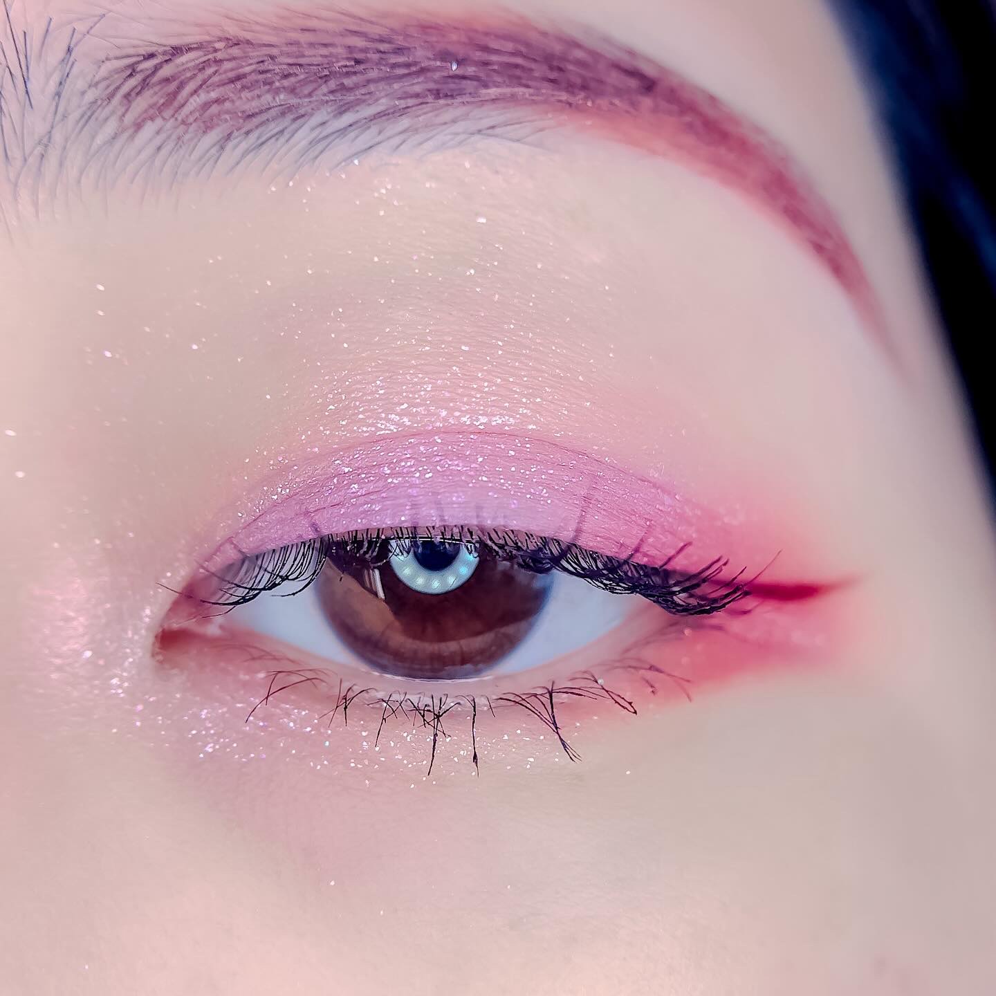 ピンクにグレージュも良いですね👌💗 今日は可愛らしい感じにしてみました💕 上下瞼黒目〜目頭側にラメを塗ってキラキラさせております🤩 目尻はマットのピンクを濃いめに重ねて💗 グレージュのアイライナーと相性◎