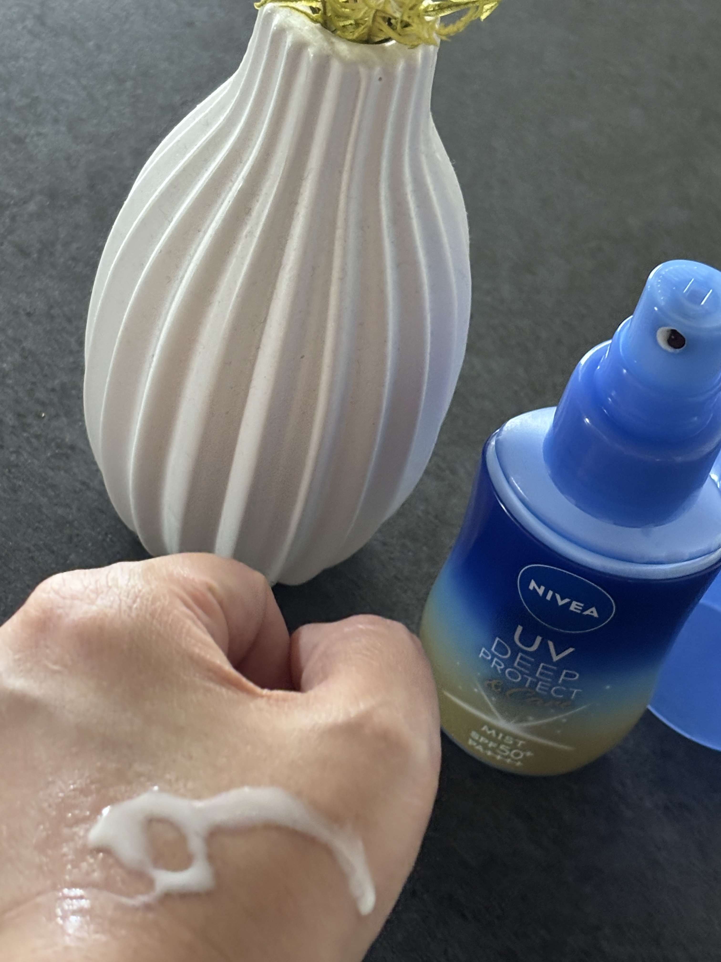ニベアUVのディーププロテクト&ケアにミストタイプが新登場! 乳白色のUVミルクが瞬時にミスト化! 白のこりしないでピタッと密着するよ。ツヤをまとってうるおい感も◎ さわやかで透明感あるクリアフローラルの香りも良き!