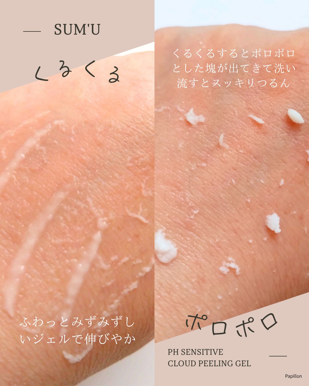 SAM’U【PHセンシティブクラウドピーリングジェル】肌の角質の上だけで反応するピーリングアイテム.ふわっとした軽いテクスチャーで、肌の上を軽くローリングするだけでOK。角質を穏やかに整えて肌をやわらかくキープ(パイナップル由来のブロメライン...
