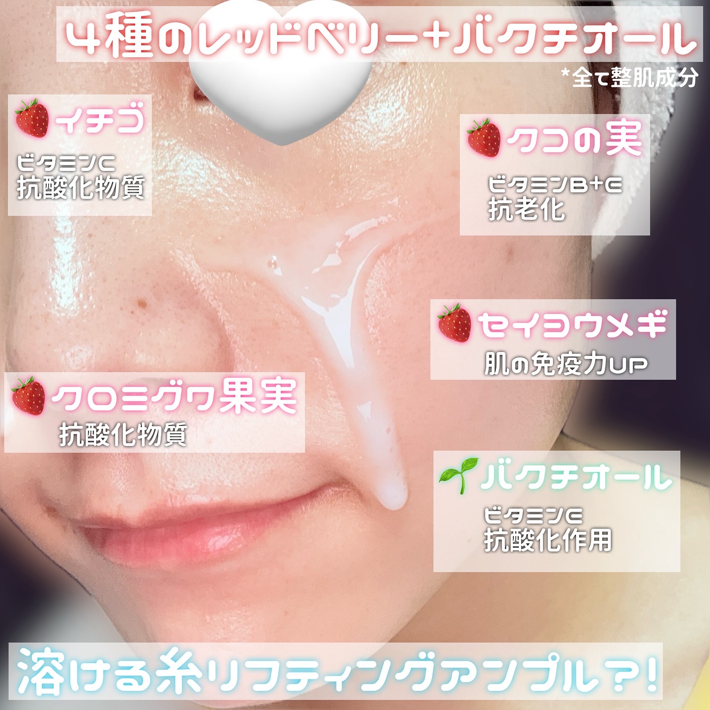 it:fuアップトックスアンプル💗まずびっくりしたのが、このアンプルの中に“ピンク色の細い糸”が入ってること!✨実際に糸が配合されていて、これが肌の上で溶けるようになじむ。まるで「溶ける糸リフティング」をしたような感覚で、引き上げられるような...