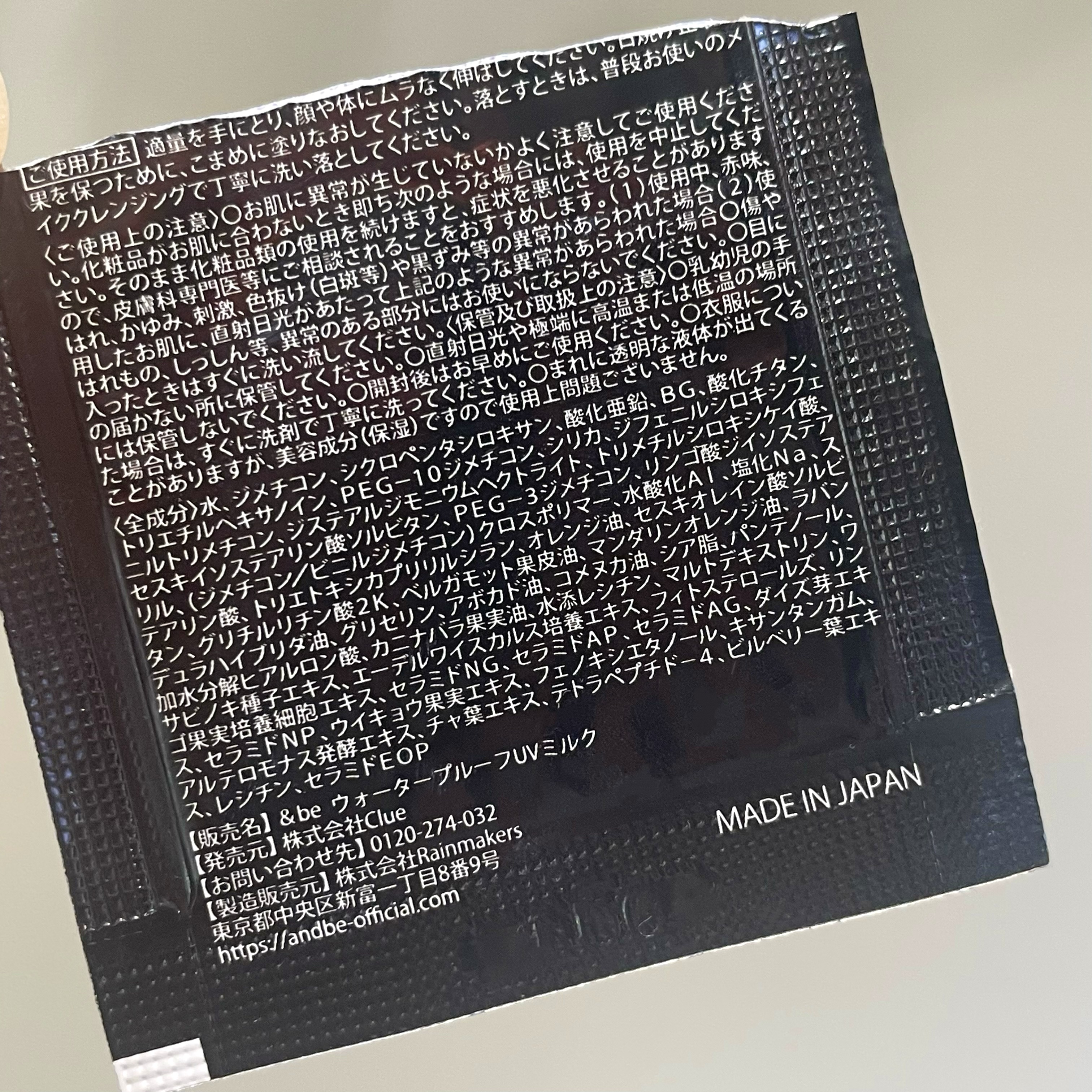 商品詳細情報&be &be ウォータープルーフUVミルク