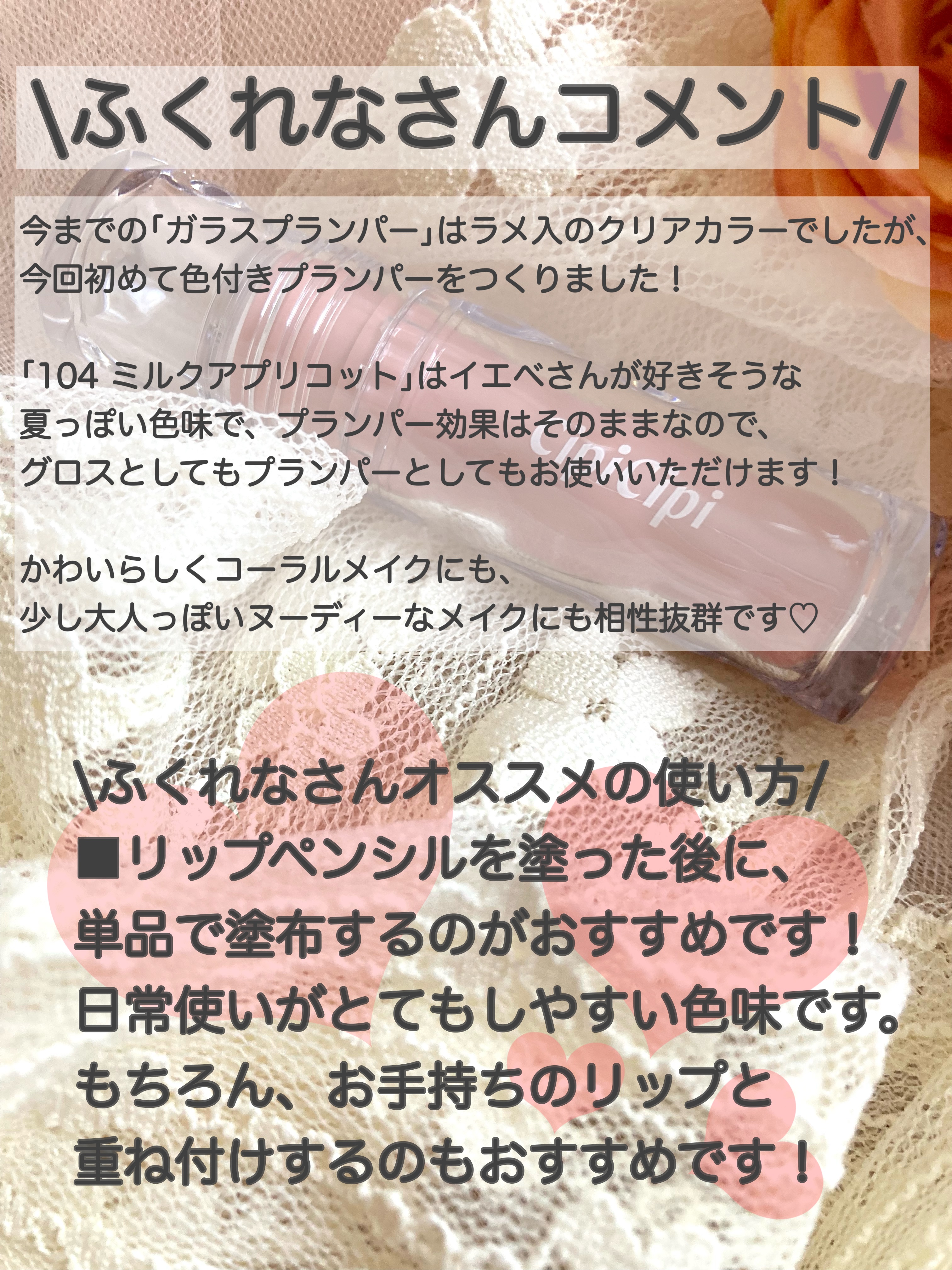 | ボリューム感のあるぷるんと唇に仕上げながら唇を乾燥から護るという最早一石二鳥プランパー💋 | 詳細を見る | ||