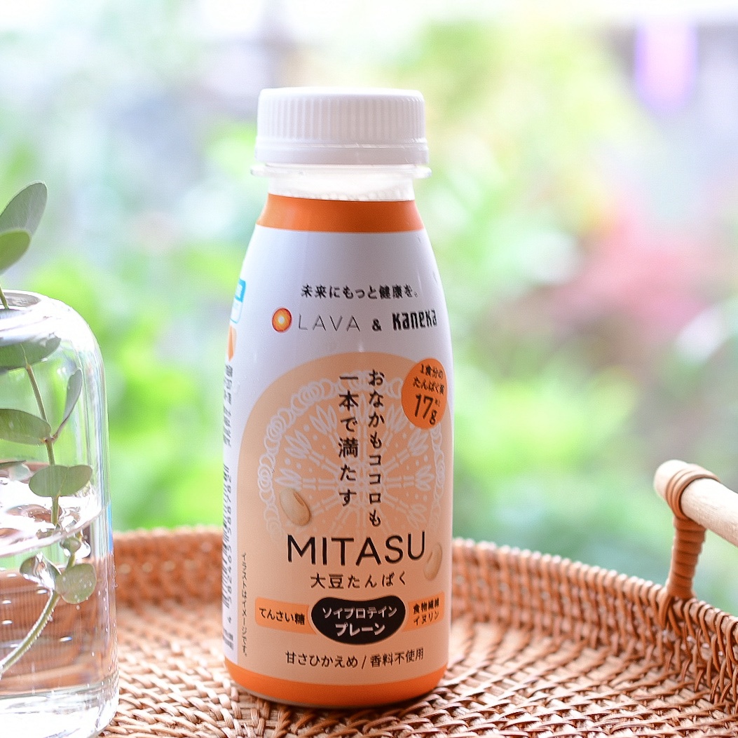 ホットヨガスタジオLAVAとカネカが共同開発した『MITASUプレーン』。『MITASUプレーン』は、1食分のたんぱく質*1が摂れる植物性たんぱくドリンクです。大豆、てんさい糖、イヌリンなど原材料のシンプルさにこだわった自然派志向商品!やさし...