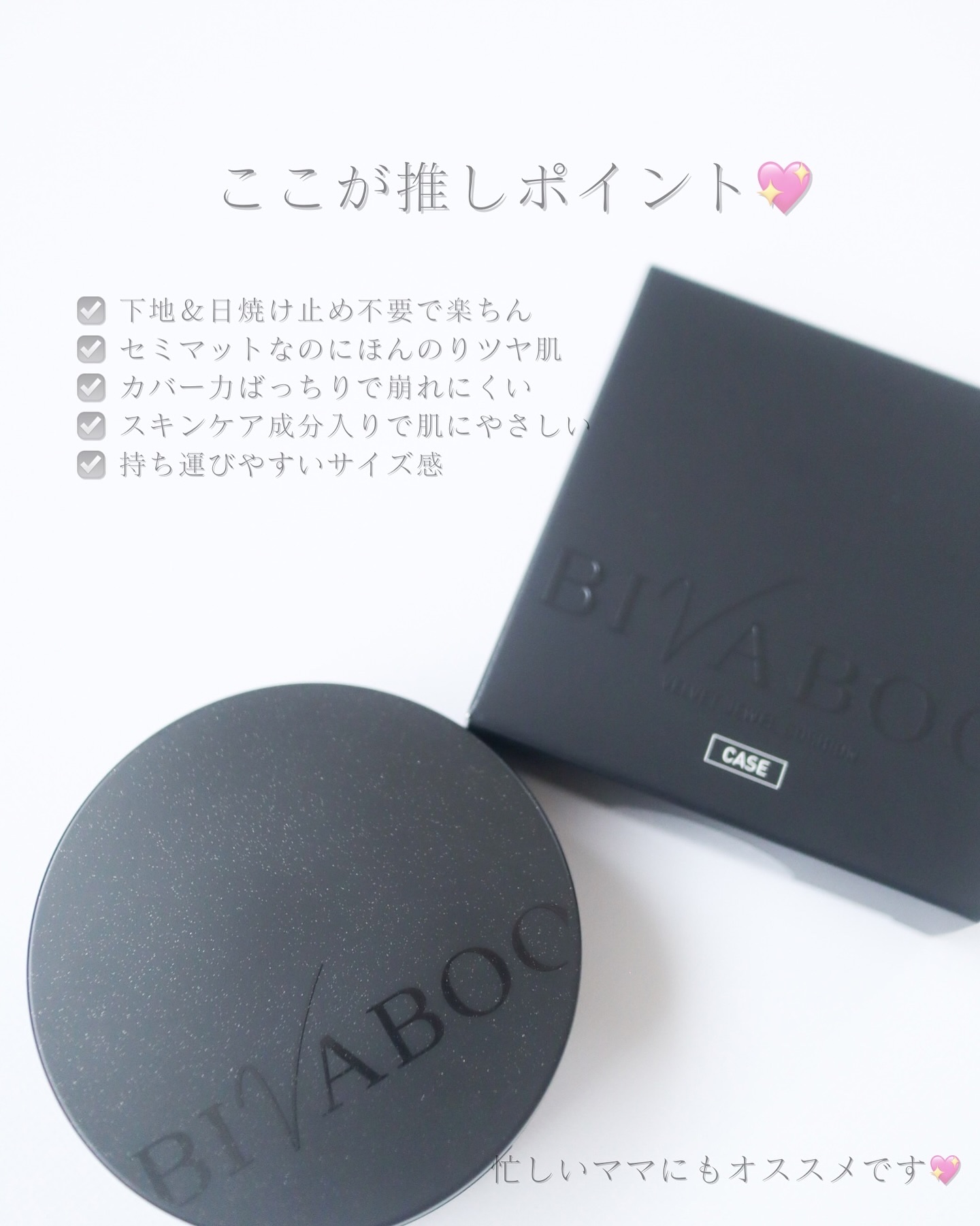 BIVABOOベルベットジュエルクッションファンデーション✨自分で自分に魔法をかける、がコンセプトのブランド・BIVABOOより。ツヤ感ベルベット肌を叶えるファンデーション!高密着高カバー、ツヤ肌が長時間続いてほしい、そんな魔法のようなメイク...