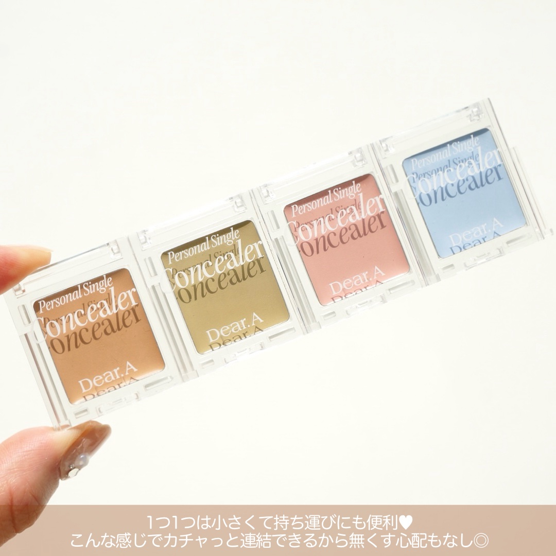 肌悩みに合わせて自分だけのコンシーラーパレットを作れる🎨Dear.A♡私だけのDIYコンシーラーパーソナルシングルコンシーラー各800円カチッとはまって繋げられるよー☺️✨今回使ったのは03マットベージュ06抹茶グリーン07ブルーミングピンク...