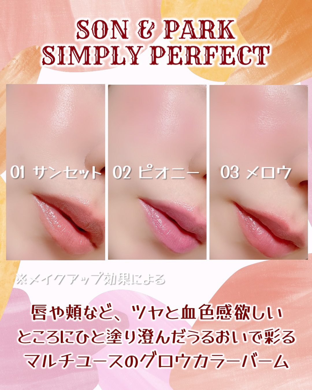 ✴︎SON&PARKアーティスプレッドカラーバームリップにもチークにも!マルチに使えるカラーバーム🤍水彩画のようにみずみずしく、しっとりと色づくマルチカラーバームで、カラー展開は現在5色あります。今回そのうちの3色を使用させていただきました。...