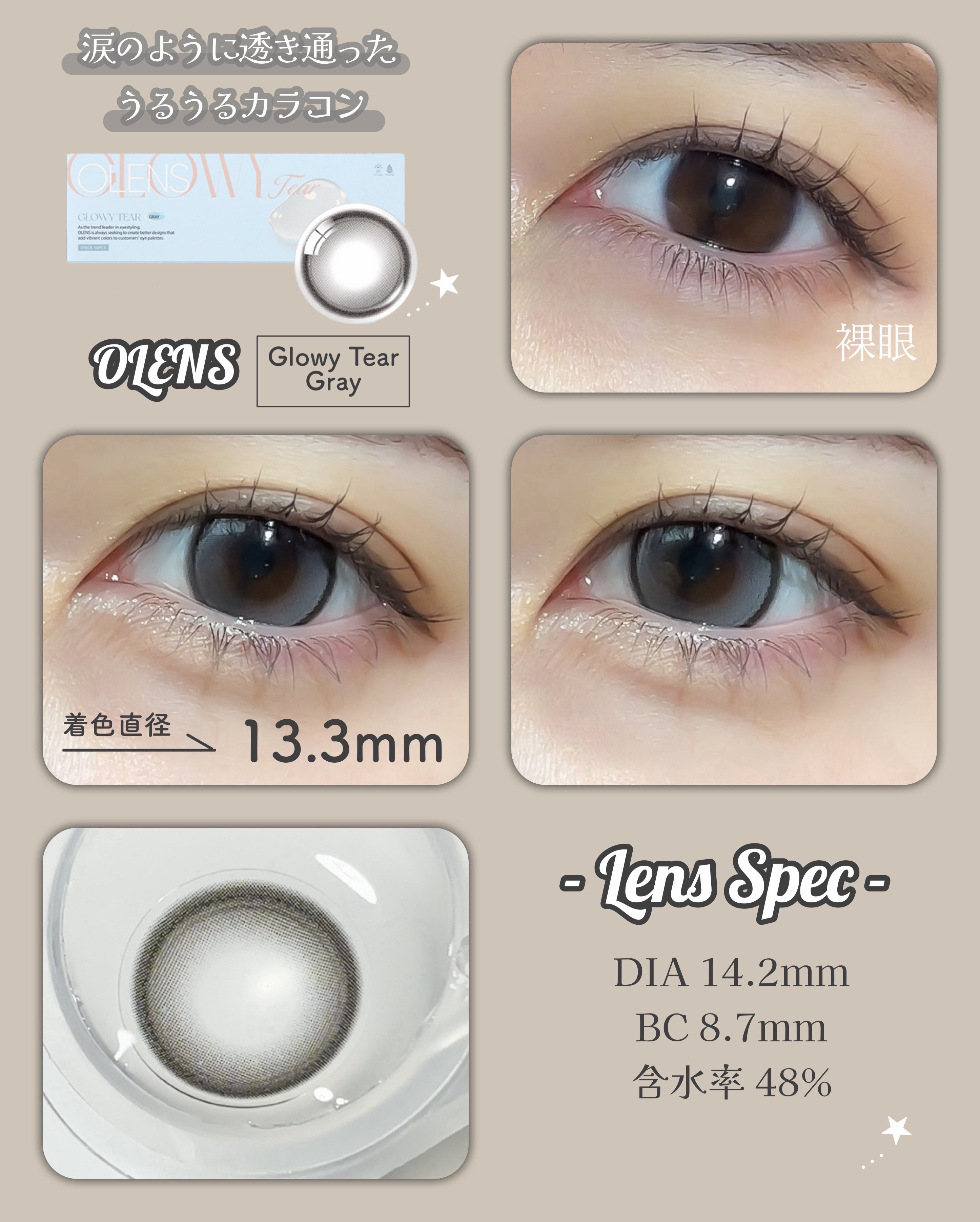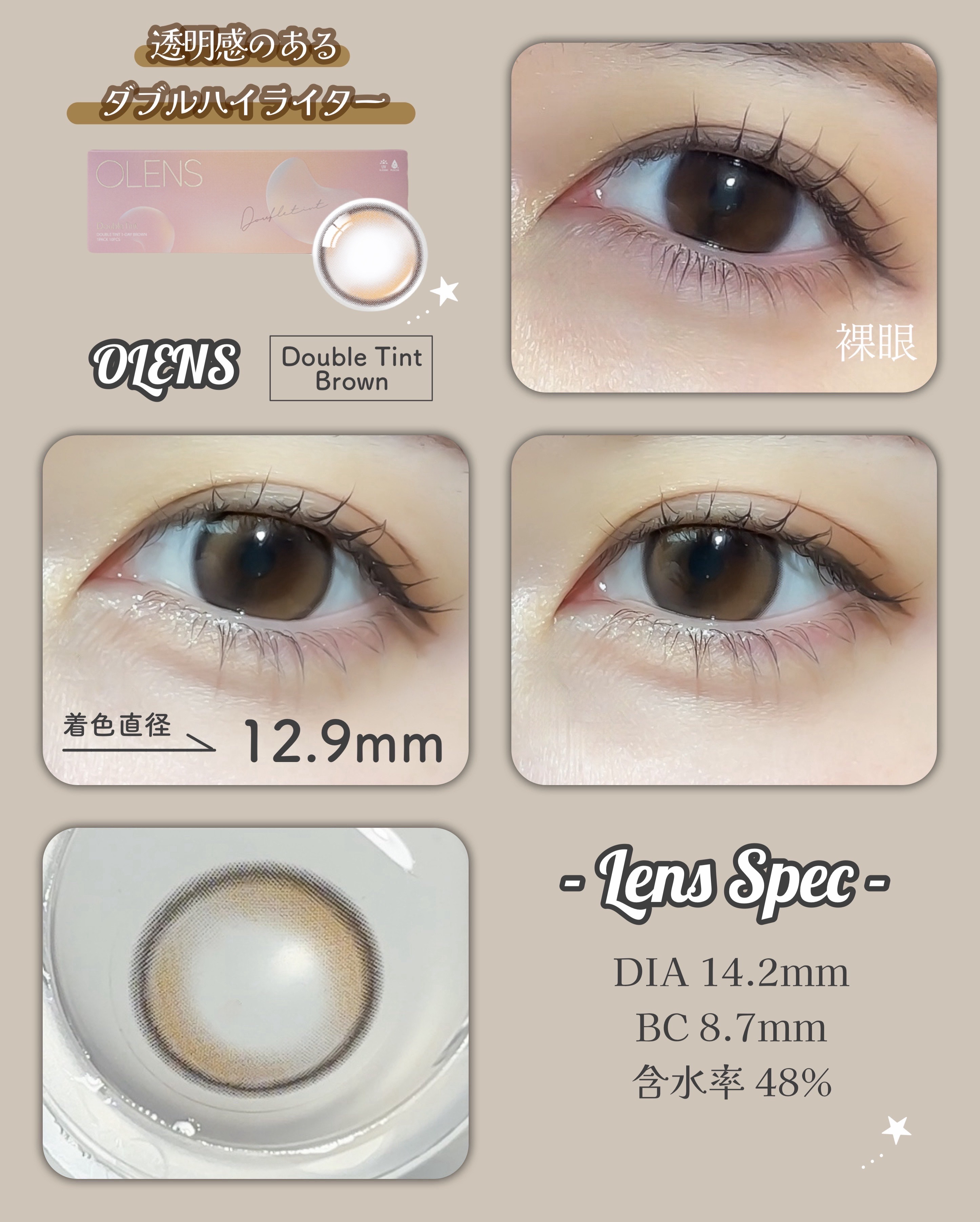 \激盛れカラコン4種比較(新作含む!)/オーレンズのDoubleTintブラウン/グレーと、新作のGLOWYTearGlowyTearブラウン/グレーを比較してみたよ!スペックはこんな感じ!▶︎DoubleTintブラウン/グレー 【スペッ...