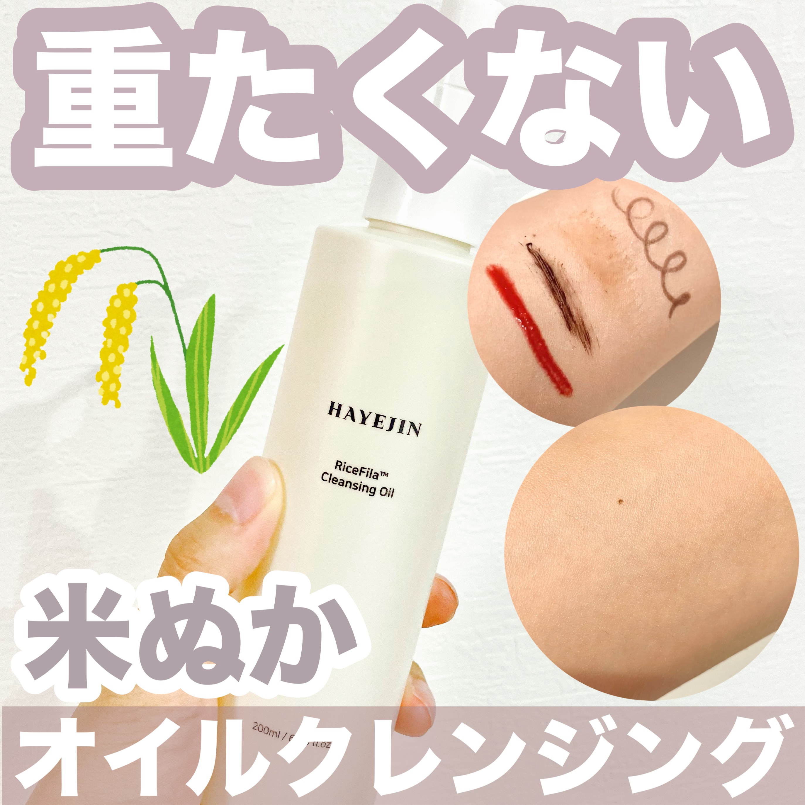 \米ぬかパワー🌾/HAYEJIN(ハイェジン)ライスフィラクレンジングオイル米由来の発酵成分が含まれているの🌾✔️米ぬかオイル100,000pm✔️水分保護バリア✔️低刺激クレンジングメイクをなじませたら少量の水を足して乳化させます🍼オイル特...