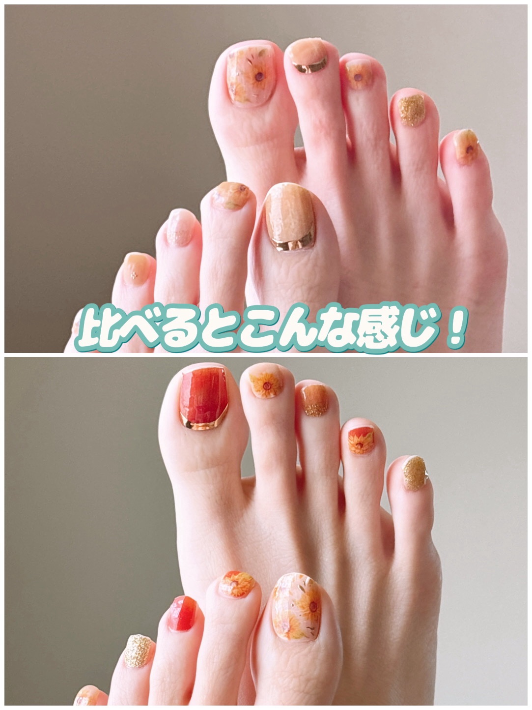 オレンジカラー夏らしくていいですね! 足の指の形が悪くてこんなにきれいになるない…(´Д⊂ヽ