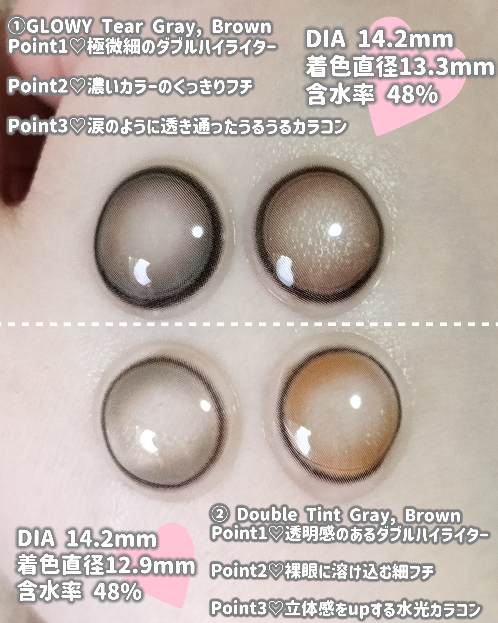 𓆸\大人可愛いアッシュ系カラコン3選!/OLENS回っても気にならないダブルハイライターカラコン! \うるうるカラコン/●GlowyTear〈Gray.Brown〉1DayDIA14.2mm着色直径13.3mm含水率48%涙のように透き通っ...