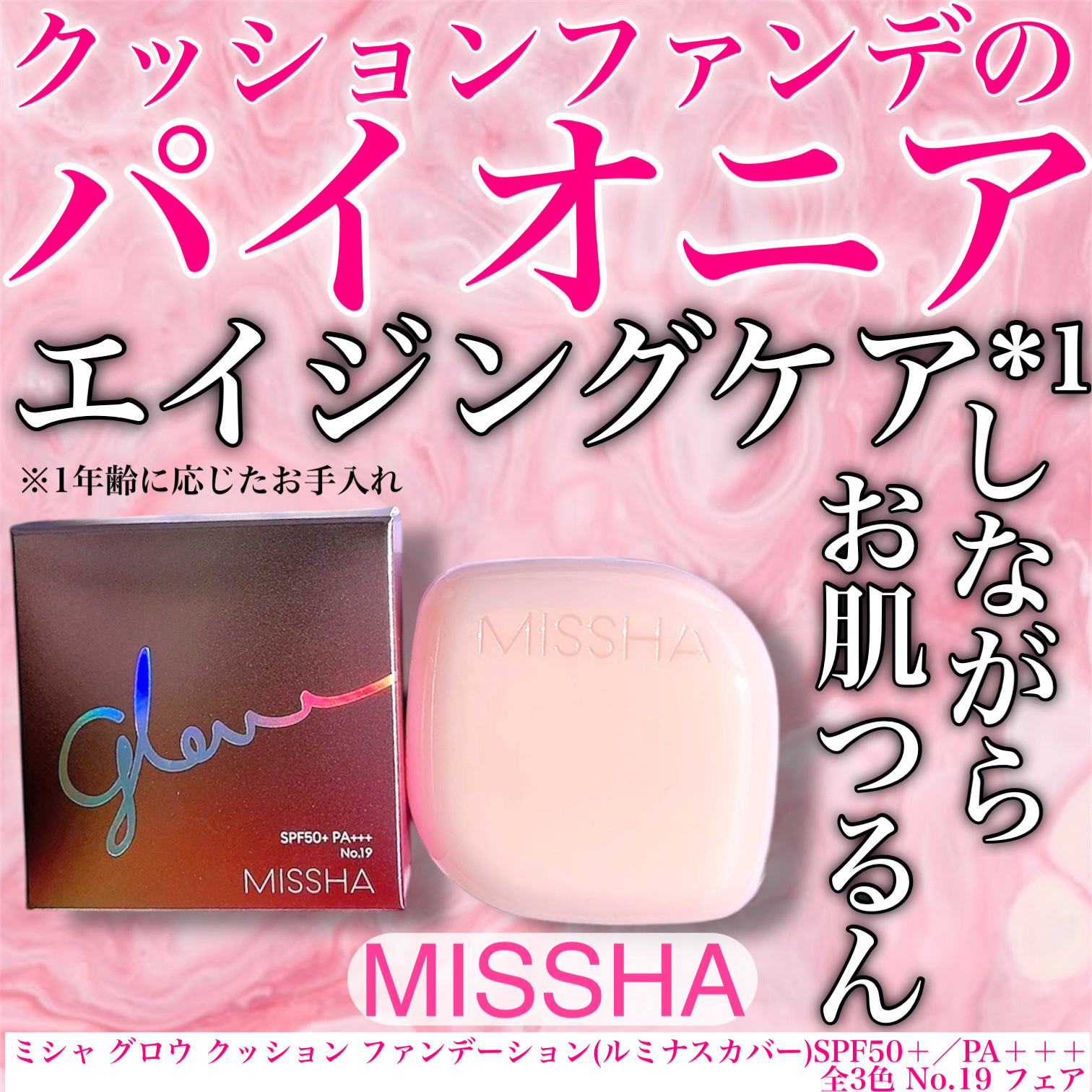 ほどよい水光感が欲しい人!MISSHAミシャグロウクッションファンデーション(ルミナスカバー)No.19フェアSPF50+/PA+++¥2,750円もう肌テカってるとは言わせない水光肌がテカリ肌に見えちゃう人集合〜!!!!MISSHAか...