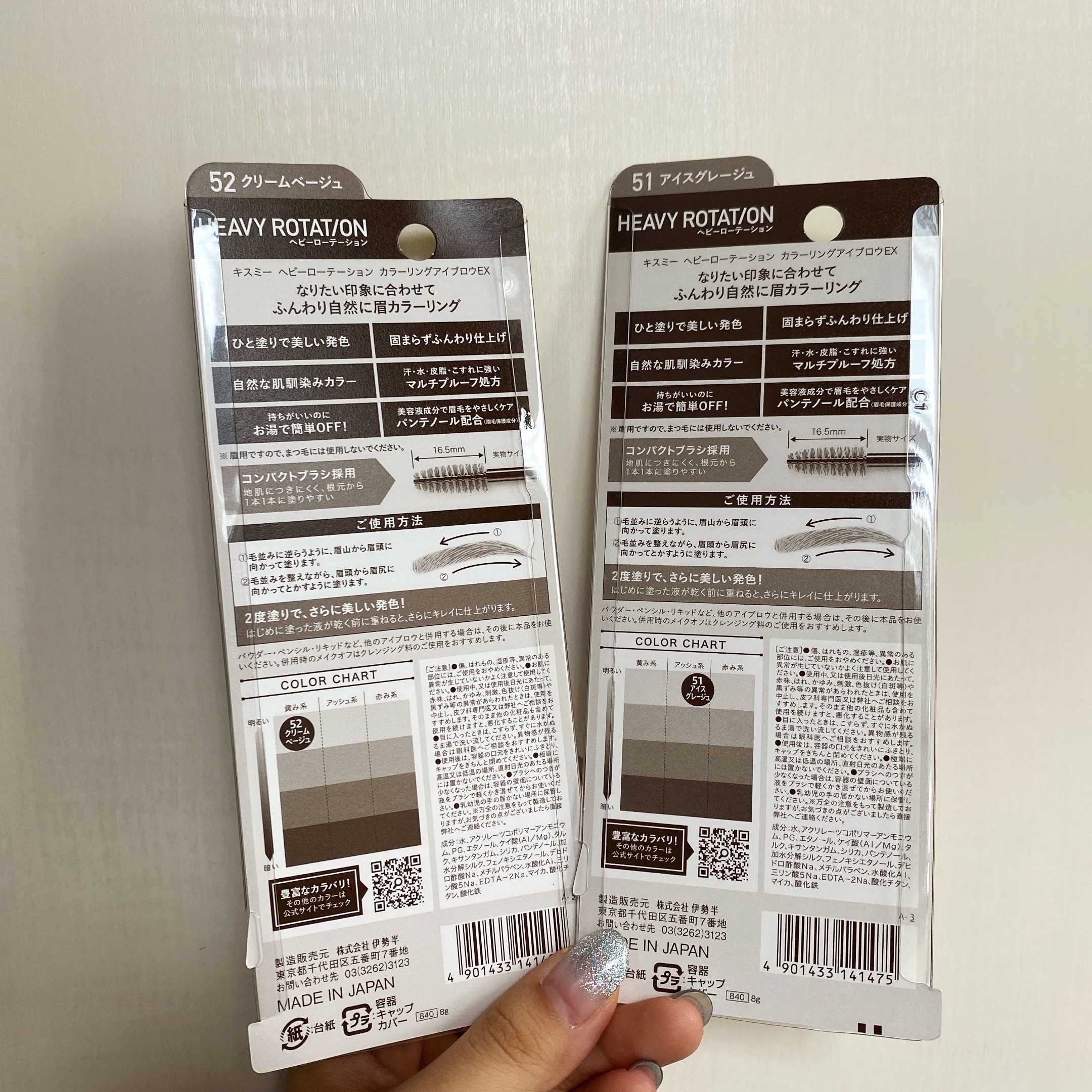 ヘビーローテーションさまからいただきました\\2025年6月9日発売//キスミーヘビーローテーションカラーリングアイブロウEX51アイスグレージュ52クリームベージュヘビロテの眉マスカラからこれからの季節にぴったりな色素薄めミュート眉を目指せ...