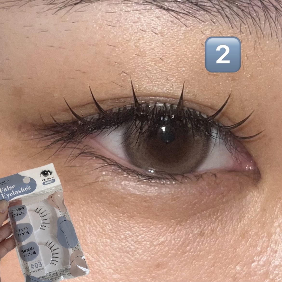 セリアで購入したつけまつげ!毛の長さ、毛の質感もナチュラルでブラウンの毛がMIXされています✨芯も透明なので馴染みやすいんですが芯が柔らかい割には付けたときにチクチクして💦目頭から離してつけてもチクチクしたのでうーんといった感じ😂でも100円...