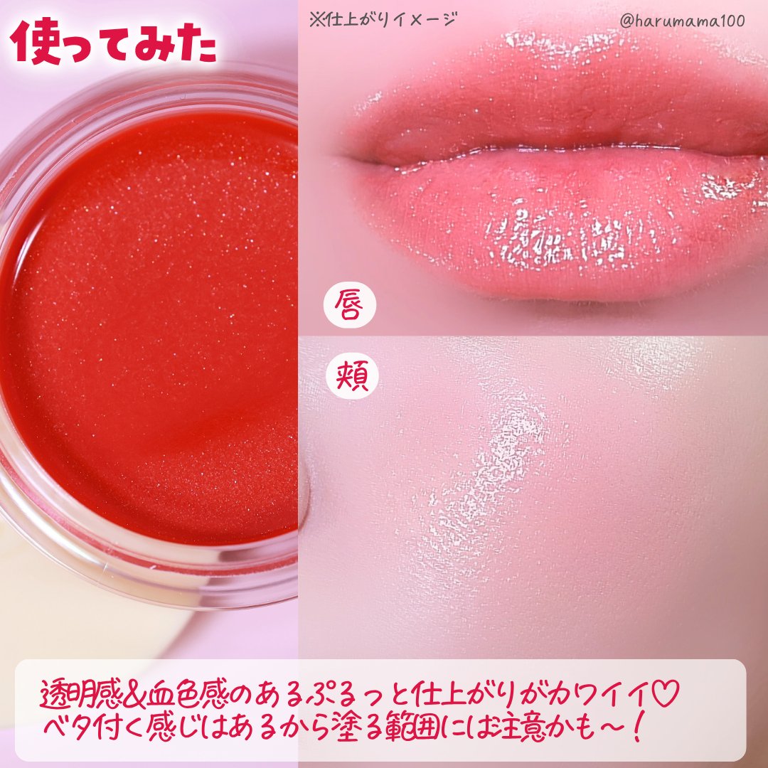 とろとろに柔らかいバームはリップにもチークにも使えるしっとりアイテム! ナチュ艶のうるうる感が凄く可愛い・・・💕 6色の多彩なラインナップだよ!ぜひチェックしてみてね🫶