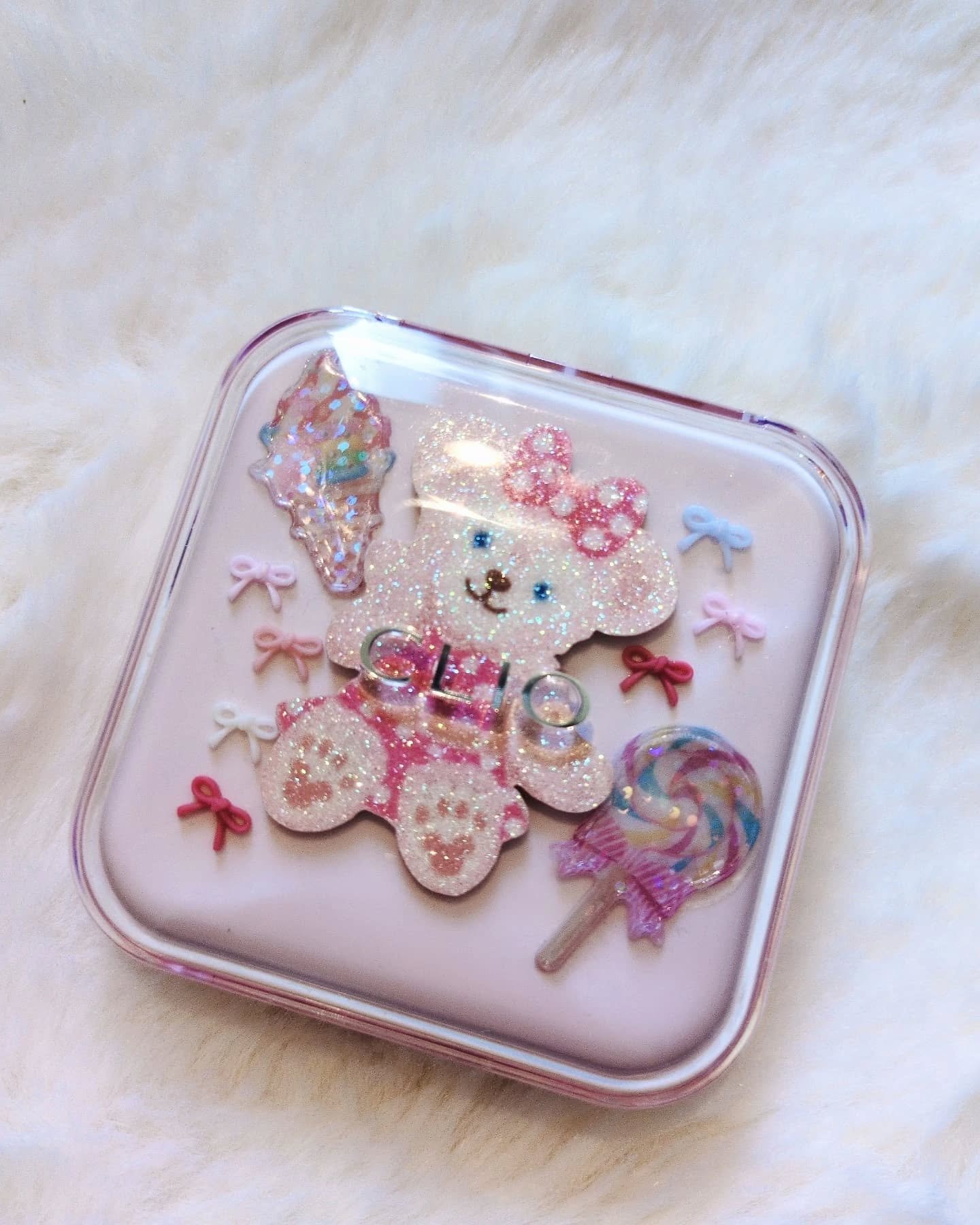 いちごのパッケージから出てきたのは... いちご型のハイライター🍓 粒までついてて可愛すぎる💕 香りまで、しっかり苺でした。 ヘタの部分はホワイトゴールド、果肉の部分はピンクのハイライターです。 2色混ぜても可愛い💗 他にもりんごやももの形のハイライターもありましたよ🍎🍑