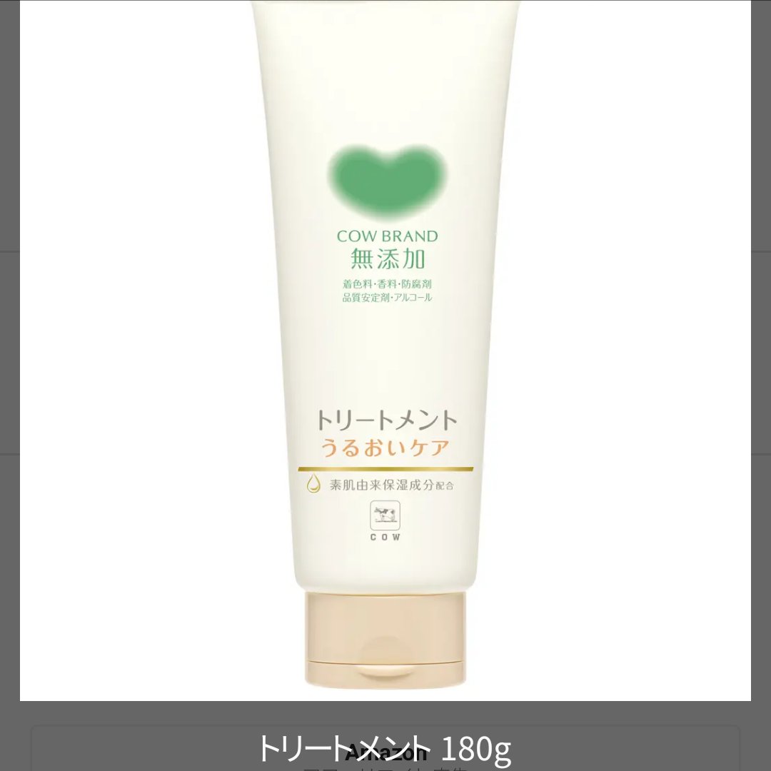 カウブランド無添加 シャンプー/トリートメント <うるおいケア> トリートメント 180gの口コミ - カウブランド無添加 シャンプー/トリートメント <うるおいケア>