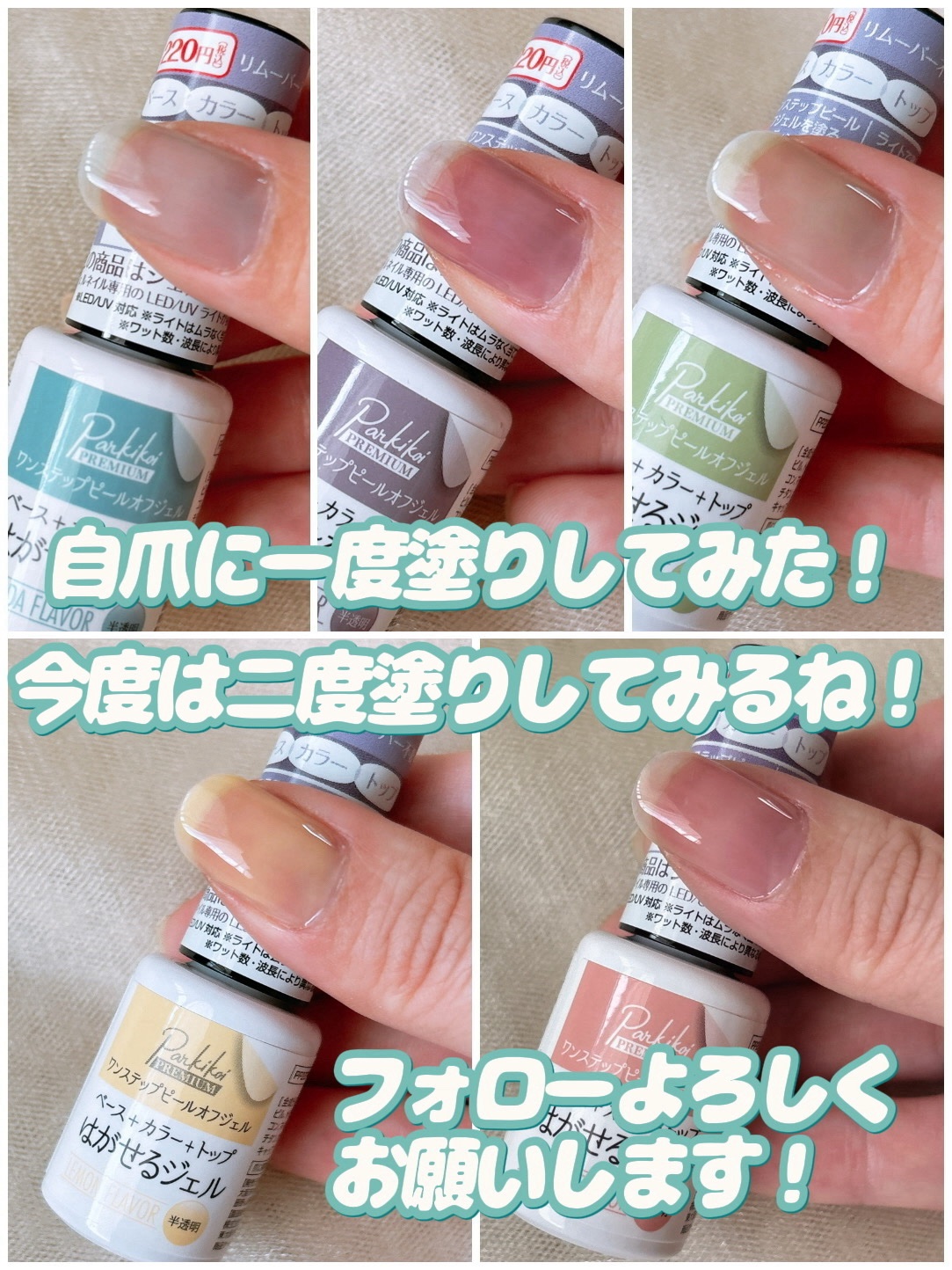 100均キャンドゥにて!!!!!!!!ついに!!!!!!!透け感カラーのボトル型ワンステップジェルが登場!!!!アイスクリームフレーバー🍨のカラーが可愛い⭐️今までペン型のピールオフジェルや透け感のないカラーのボトル型ピールオフジェルはは10...