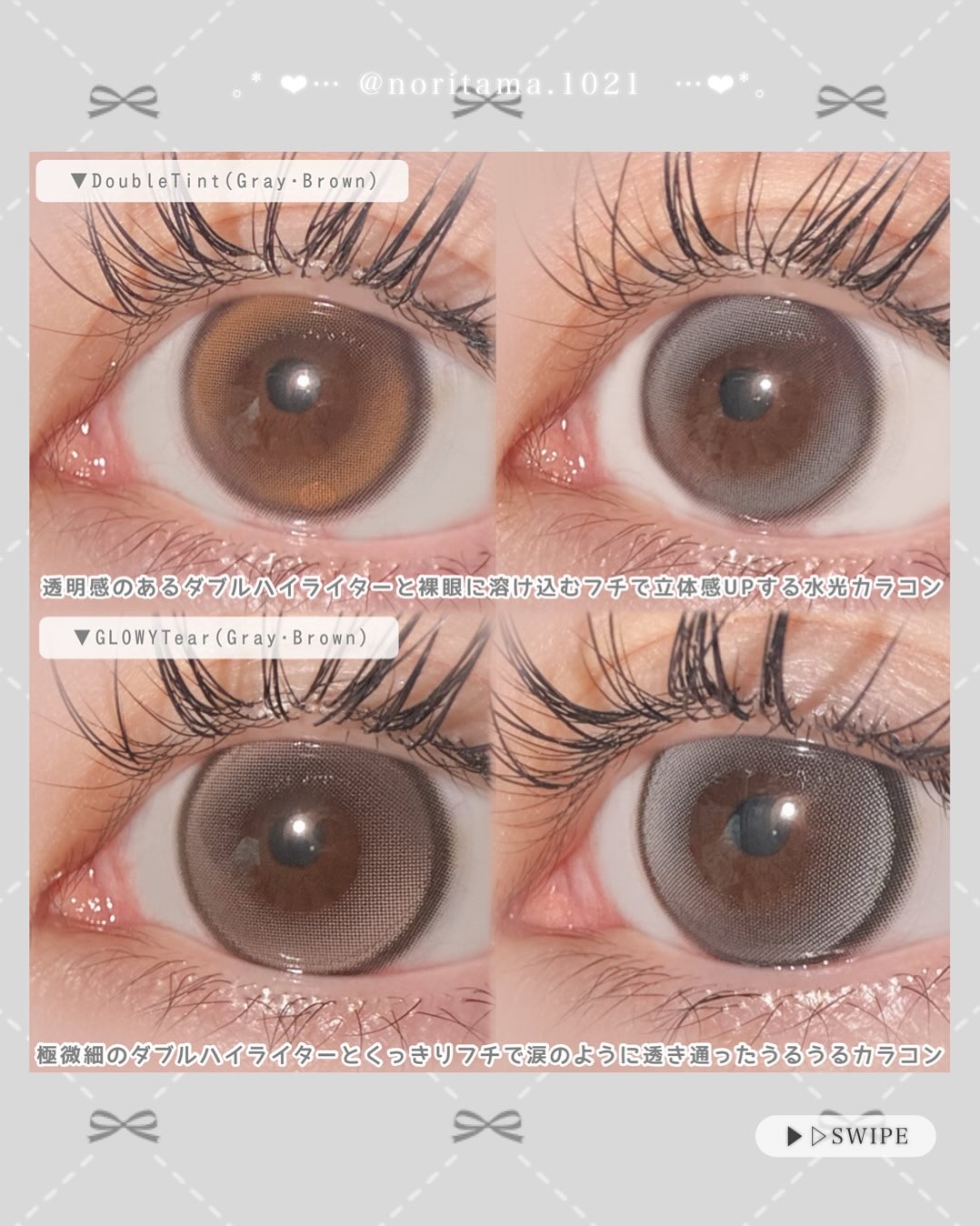 \うるうるカラコン/OLENSGlowyTear1DayBrown/GrayDoubleTint1DayBrown/Gray◆GlowyTear1Day新作は上下で太さの違ううるうるダブルハイライターが可愛すぎる🤍極微細ダブルハイライターと...