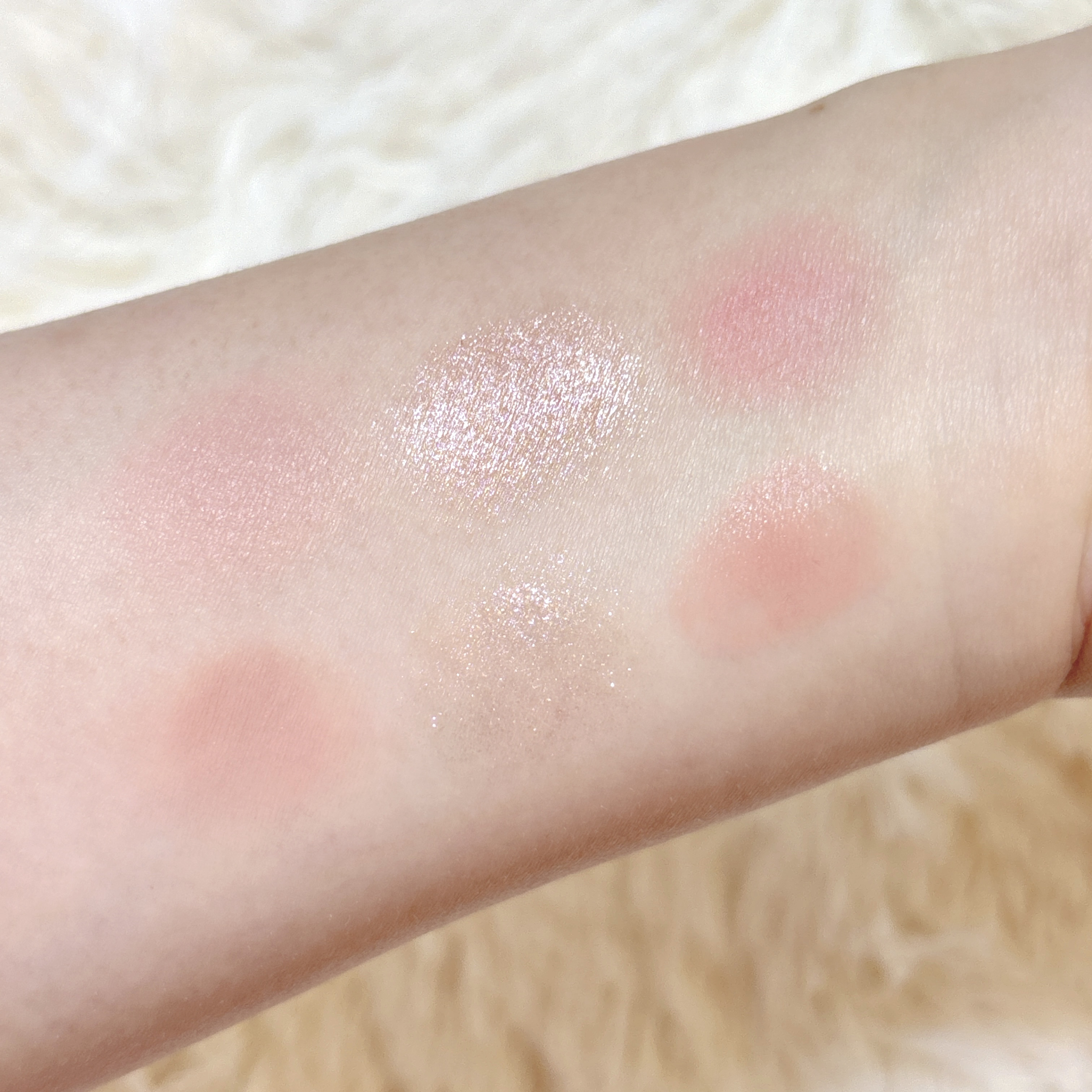 変身コンパクトのようなキラキラのハートが付いたコンパクトが乙女心をくすぐるチークです💖💖 中も細かい柄が彫られていて使うのが勿体無いくらいですが、スウォッチしました🥺 色味も可愛くて最高❣️