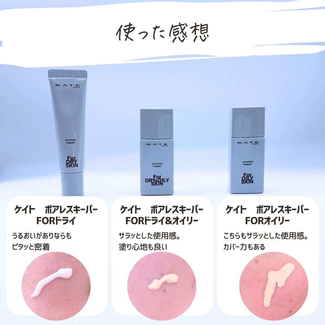 KATE様から頂きました♪KATEポアレスキーパーFORドライポアレスキーパーFORオイリーポアレスキーパーFORドライ&オイリー毛穴を制して、くずれをブロック!乾燥肌向け、オイリー肌向け、混合肌向けの3種類展開。◎ポアレスキーパーFORドラ...