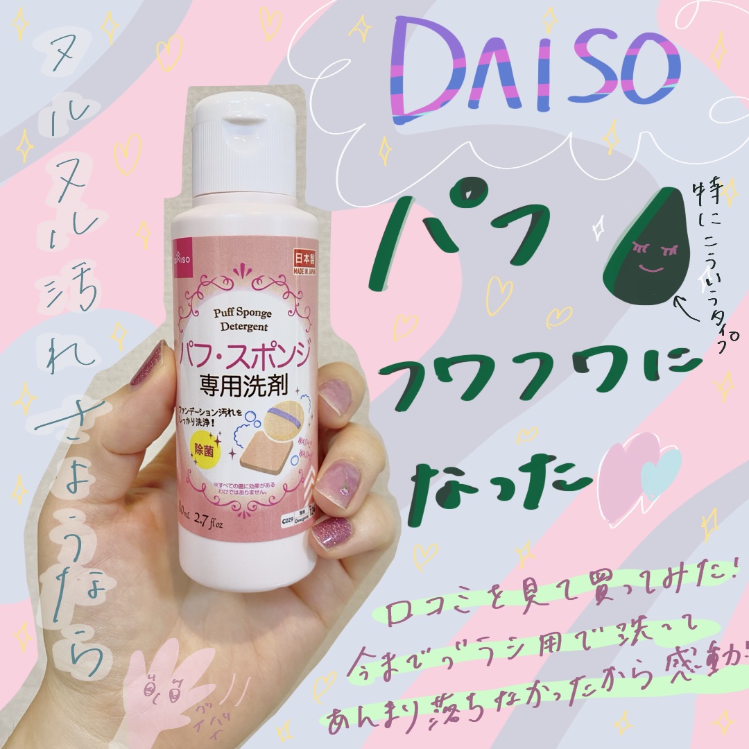 【購入品】使い切りレビュー良い点ダイソーで買える食器用(中性)洗剤よりもキレイにファンデ落ちるこちらの洗剤を使用して洗ったスポンジでメイクしても肌トラブルなかったです汚れている部分にかかるように洗剤たっぷりつけて揉み洗いするとキレイに落ちます...