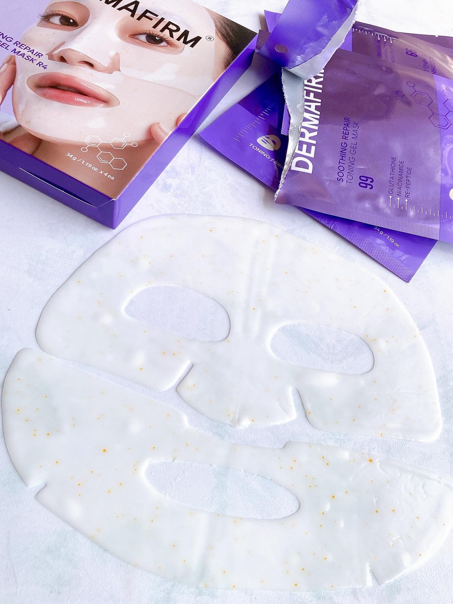 🌜\3時間パックしたら…マスクが透明になって肌が超ツヤる/これは…普通のシートマスクじゃない!!【R4スージングゲルマスク】は、ぷるぷるのゲル素材💧でできた上下セパレートのスペシャルマスク✨しかも中に入ってるオレンジのツブツブ=グルタチオンカ...