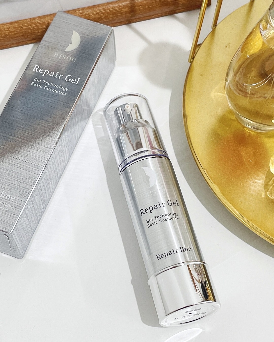 \一滴の水も使用してない濃密美容液 /過去に何度も使い切りしたお気に入りのRISOUリペアジェル♡・100%美容成分・100%植物由来・一滴の水も使用してない濃密なジェル。よーく見ると、中に水泡が見える。とろ〜り濃密なジェルが肌にのせた瞬間「...