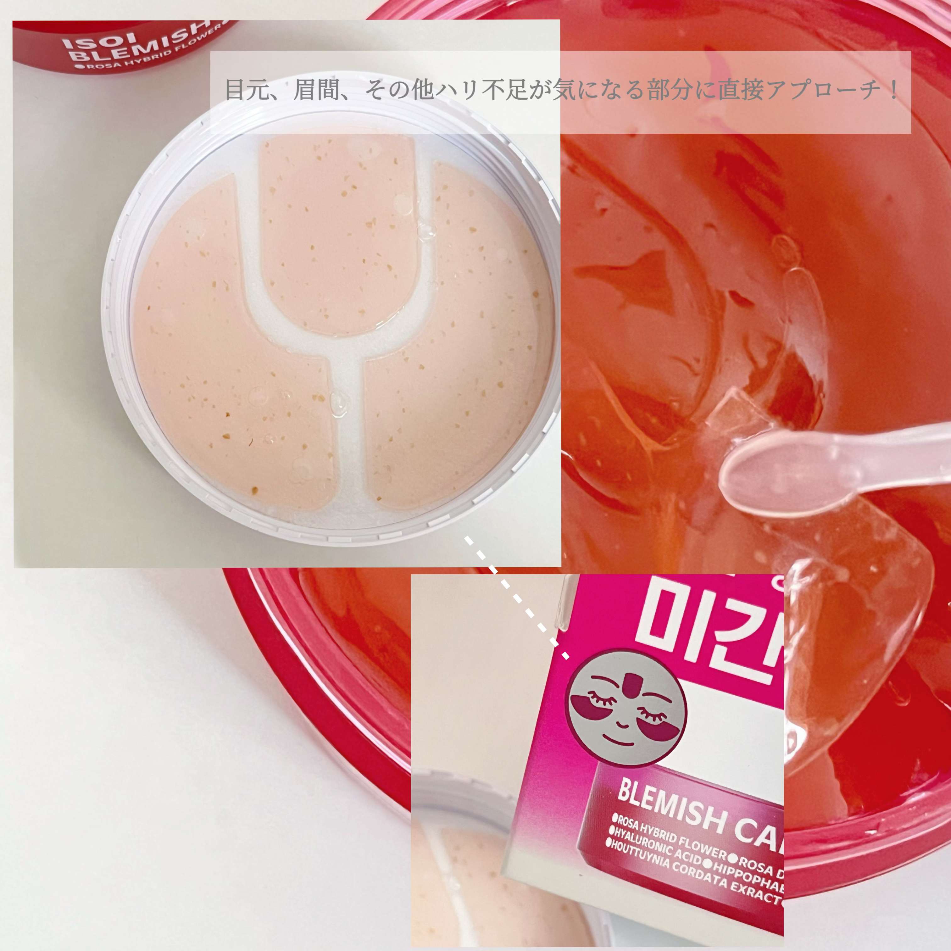 - アイソイこだわりのブルガリアンローズオイル*と美容保湿成分を配合したアイゲルパッチです。目元や眉間、口周りなど気になる箇所を集中ケア。 8種類のヒアルロン酸*とグルタチオン*やナイアシンアミド*配合で透明感あふれるような潤い肌へと導きます。 *保湿成分